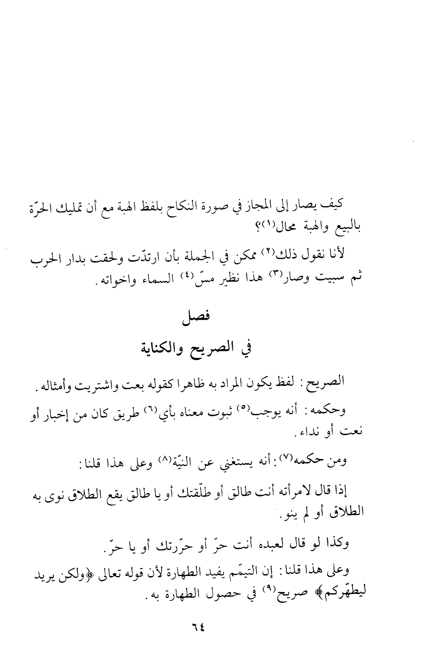 الْفَصْل السَّادِس فصل فِي الصَّرِيح وَالْكِنَايَة