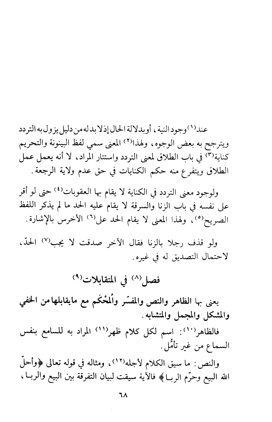 الْفَصْل السَّابِع فصل فِي المتقابلات يعْنى بهَا الظَّاهِر وَالنَّص والمفسر والمحكم مَعَ مَا يقابلها من الْخَفي والمشكل والمجمل والمتشابه