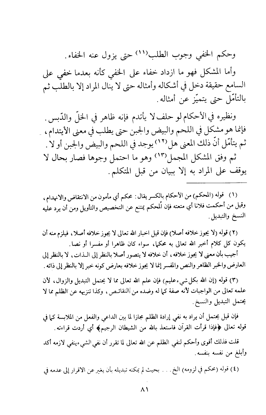 وَحكم الْخَفي وجوب الطّلب حَتَّى يَزُول عَنهُ الخفاء