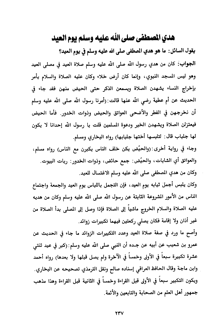 هدي المصطفى صلى الله عليه وسلم يوم العيد