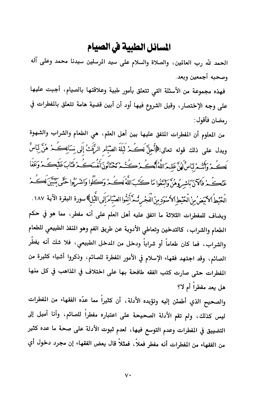 المسائل الطبية في الصيام