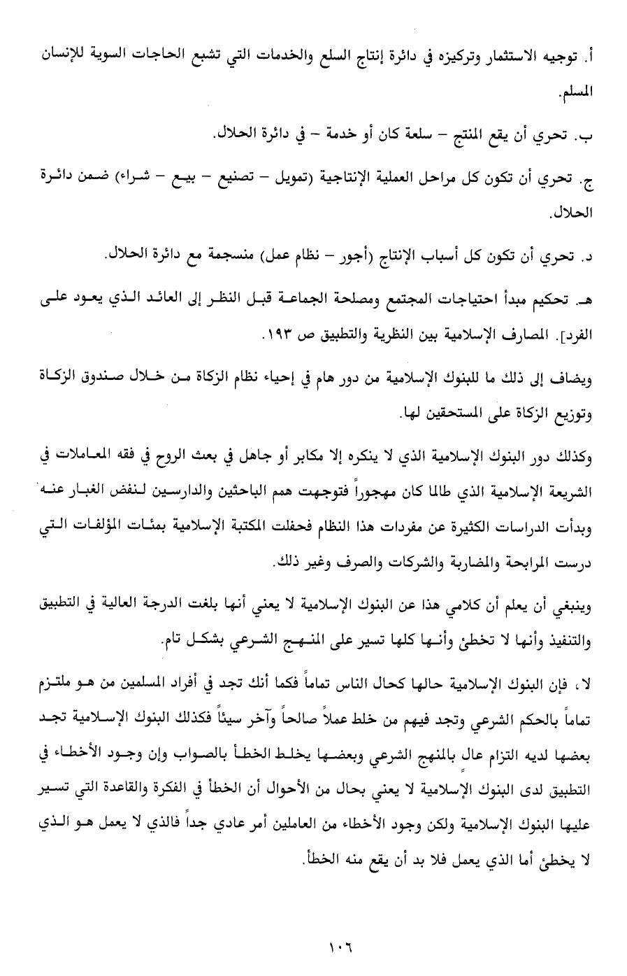 هـ. تحكيم مبدأ احتياجات المجتمع ومصلحة الجماعة قبل النظر إلى العائد الذي يعود على الفرد]. المصارف الإسلامية بين النظرية والتطبيق ص 193.