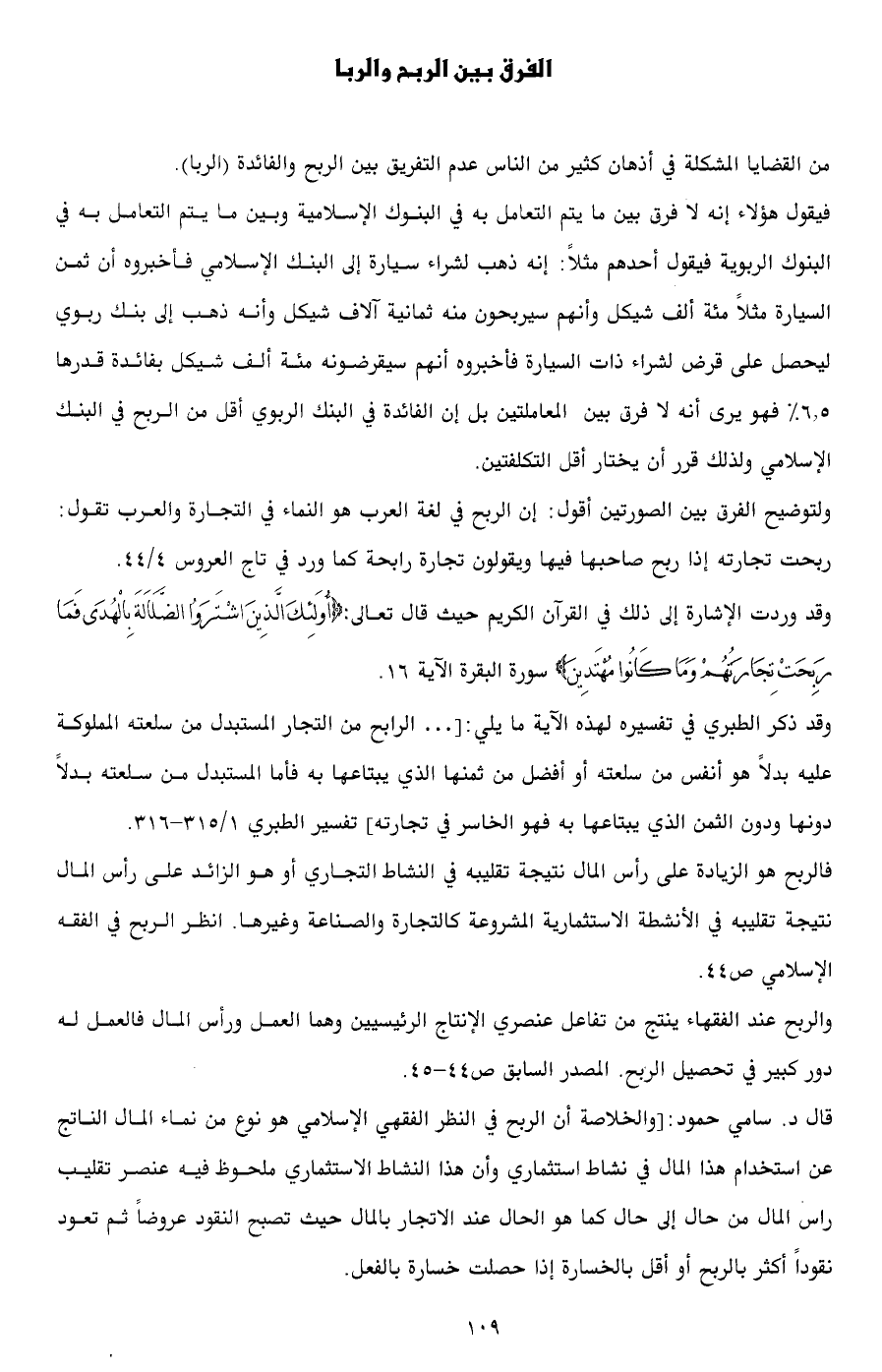 قال د. سامي حمود: [والخلاصة أن الربح في النظر الفقهي الإسلامي هو نوع من نماء المال الناتج عن استخدام هذا المال في نشاط استثماري وأن هذا النشاط الاستثماري ملحوظ فيه عنصر تقليب راس المال من حال إلى حال كما هو الحال عند الاتجار بالمال حيث تصبح النقود عروضاً ثم تعود نقوداً أكثر بالربح أو أقل بالخسارة إذا حصلت خسارة بالفعل.