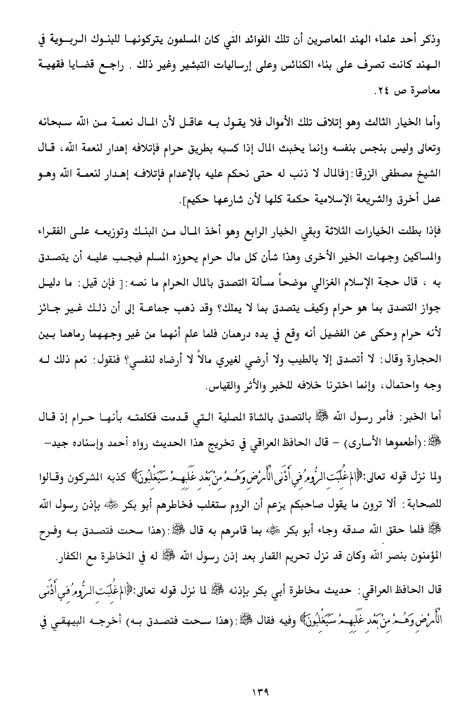 وذكر أحد علماء الهند المعاصرين أن تلك الفوائد التي كان المسلمون يتركونها للبنوك الربوية في الهند كانت تصرف على بناء الكنائس وعلى إرساليات التبشير وغير ذلك. راجع قضايا فقهية معاصرة ص 24.