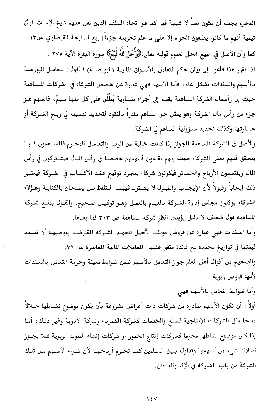 المحرم يجب أن يكون نصاً لا شبهة فيه كما هو اتجاه السلف الذين نقل عنهم شيخ الإسلام ابن تيمية أنهم ما كانوا يطلقون الحرام إلا على ما علم تحريمه جزماً] بيع المرابحة للقرضاوي ص13.