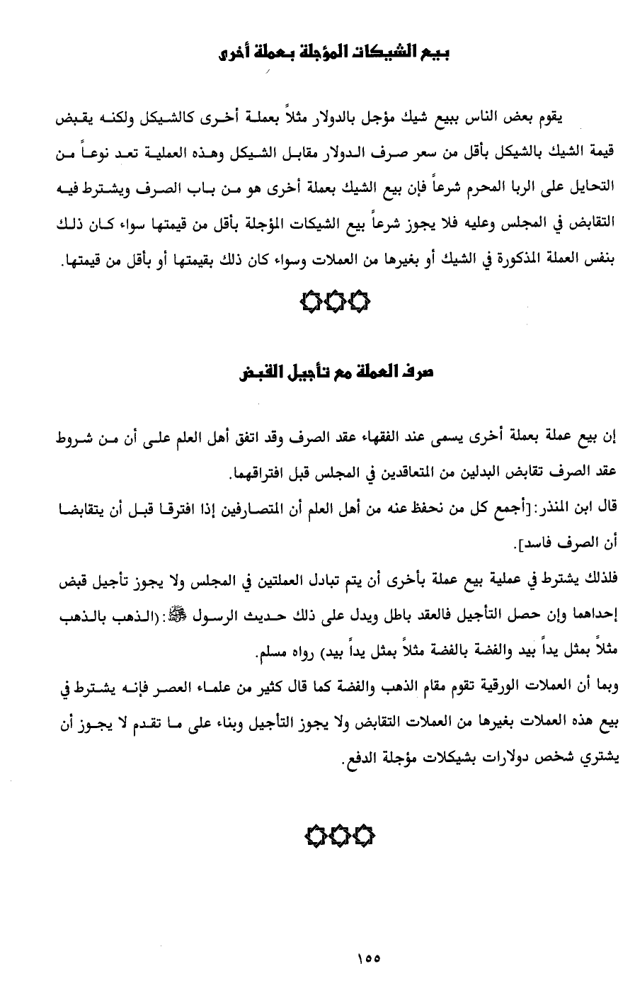 إن بيع عملة بعملة أخرى يسمى عند الفقهاء عقد الصرف وقد اتفق أهل العلم على أن من شروط عقد الصرف تقابض البدلين من المتعاقدين في المجلس قبل افتراقهما.