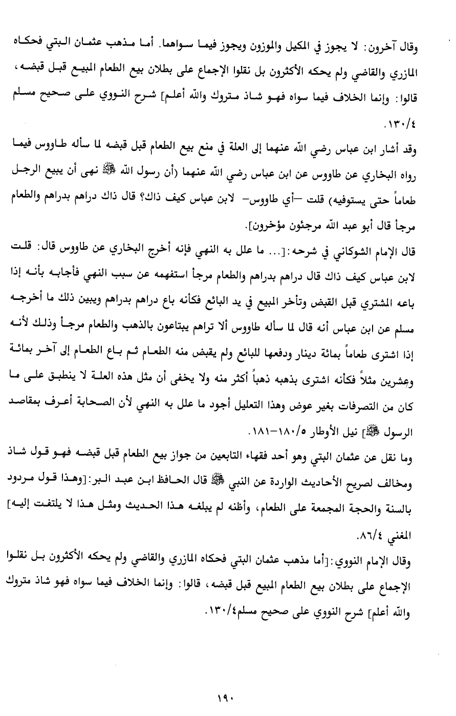 وقال الإمام النووي: [أما مذهب عثمان البتي فحكاه المازري والقاضي ولم يحكه الأكثرون بل نقلوا الإجماع على بطلان بيع الطعام المبيع قبل قبضه, قالوا: وإنما الخلاف فيما سواه فهو شاذ متروك والله أعلم] شرح النووي على صحيح مسلم4/ 130.