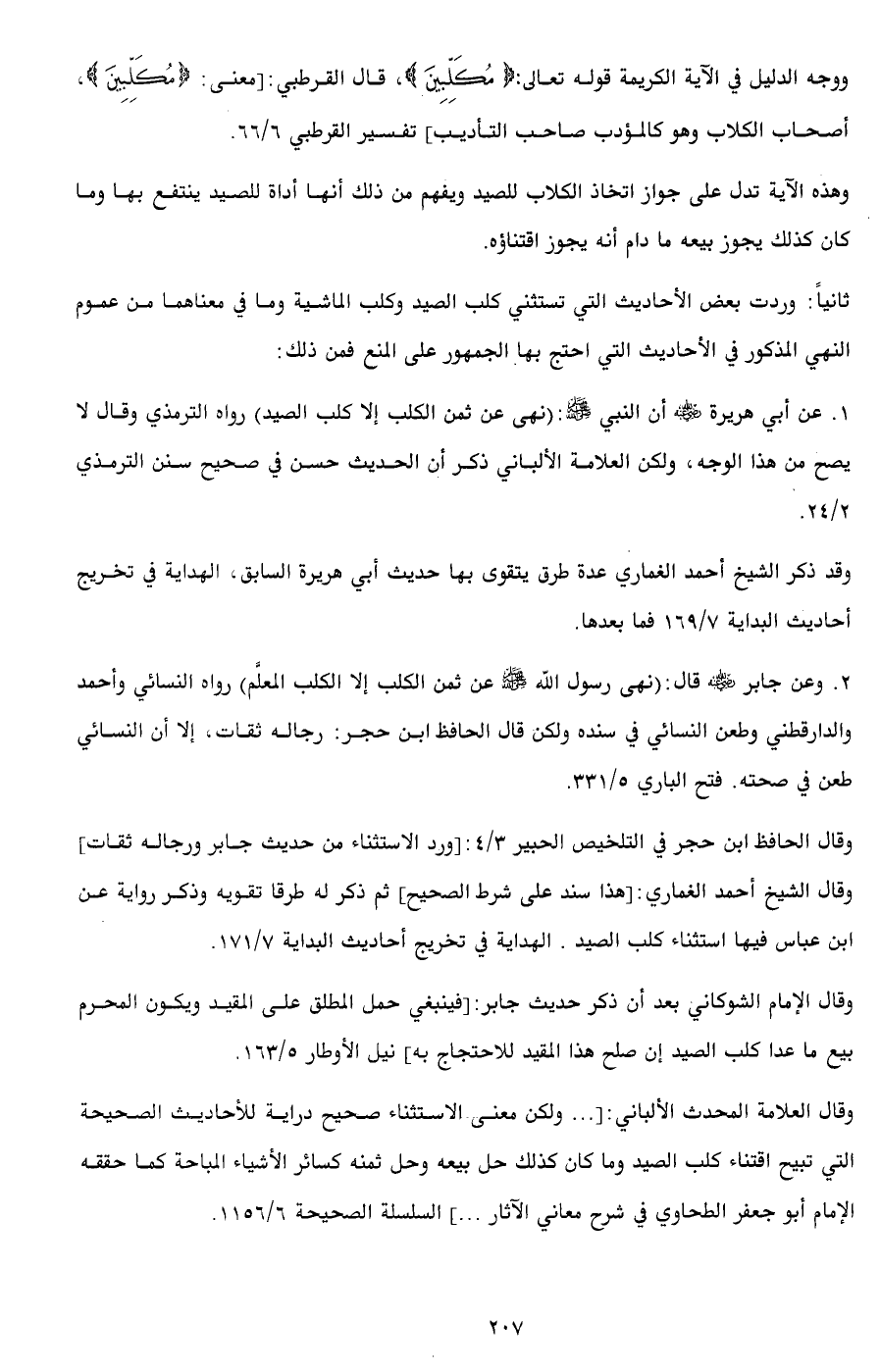 وقال الإمام الشوكاني بعد أن ذكر حديث جابر: [فينبغي حمل المطلق على المقيد ويكون المحرم بيع ما عدا كلب الصيد إن صلح هذا المقيد للاحتجاج به] نيل الأوطار 5/ 163.