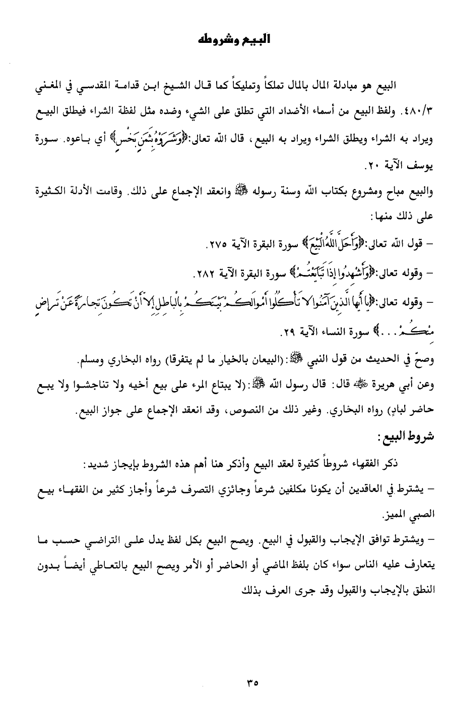 - قول الله تعالى: {وَأَحَلَّ اللَّهُ الْبَيْعَ} سورة البقرة الآية 275.