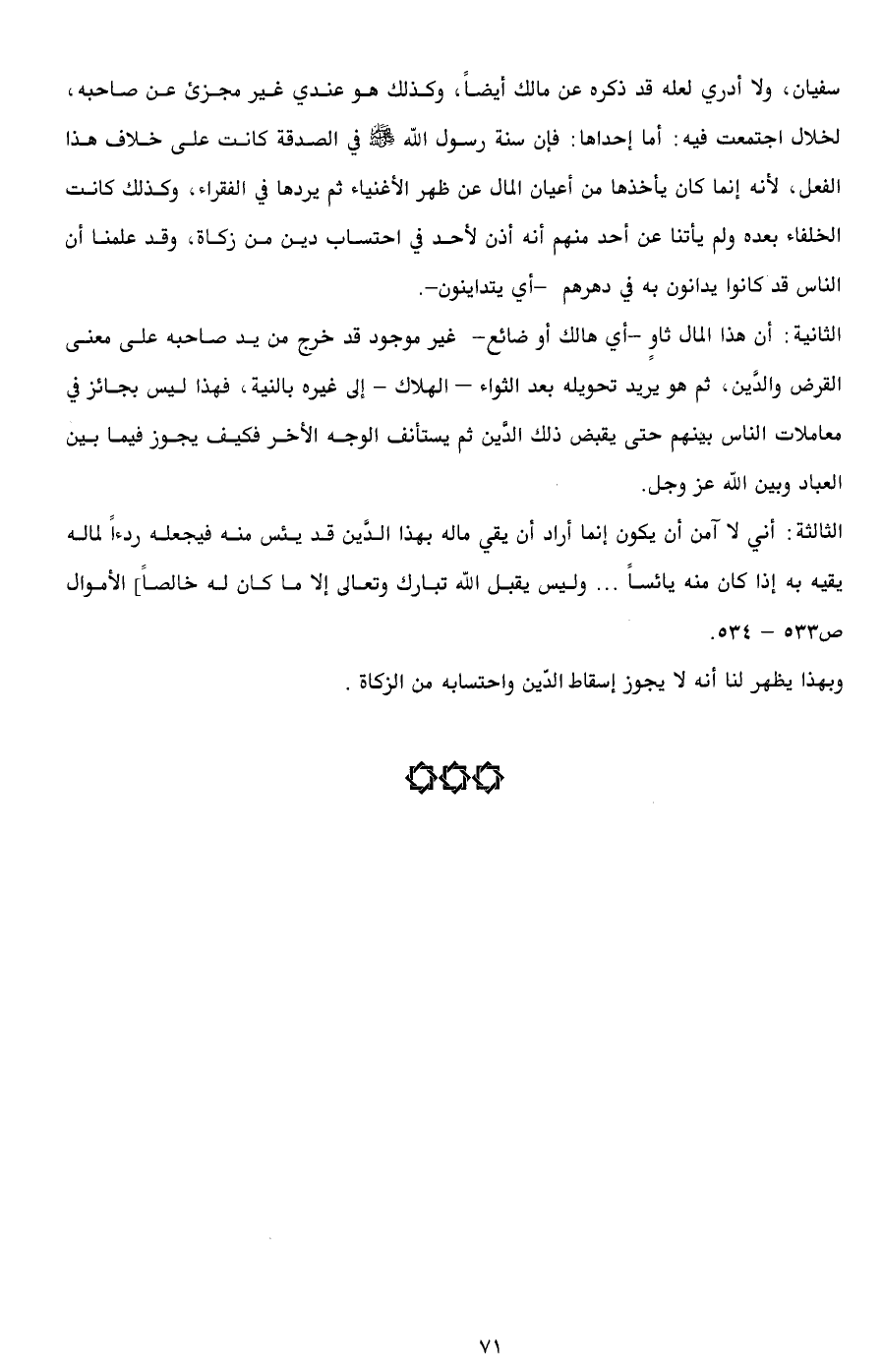 الثالثة: أني لا آمن أن يكون إنما أراد أن يقي ماله بهذا الدَّين قد يئس منه فيجعله ردءاً لماله يقيه به إذا كان منه يائساً ... وليس يقبل الله تبارك وتعالى إلا ما كان له خالصاً] الأموال ص533 - 534.