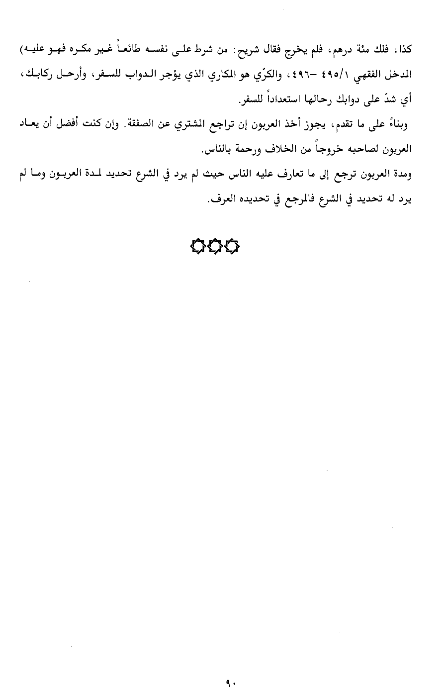 كذا، فلك مئة درهم، فلم يخرج فقال شريح: من شرط على نفسه طائعاً غير مكره فهو عليه) المدخل الفقهي 1/ 495 - 496، والكرّي هو المكاري الذي يؤجر الدواب للسفر، وأرحل ركابك، أي شدّ على دوابك رحالها استعداداً للسفر.