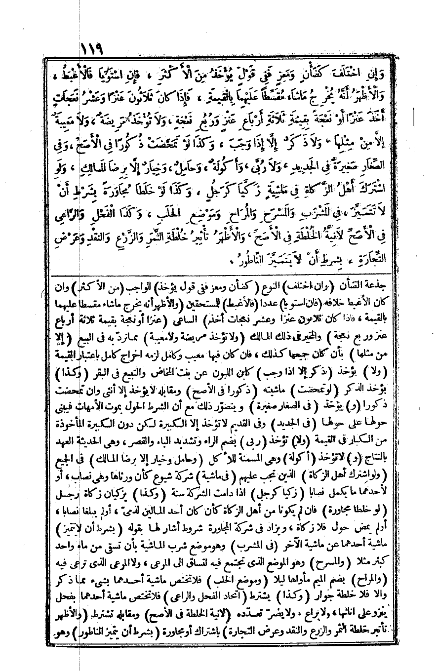 فان لم يَكُونَا من أهل الزَّكَاة كَأَن كَانَ أحد الْمَالَيْنِ لذِمِّيّ أَو لم يبلغَا نِصَابا أَو لم يمض حول فَلَا زَكَاة وَيُزَاد فِي شركَة الْمُجَاورَة شُرُوط أَشَارَ لَهَا بقوله