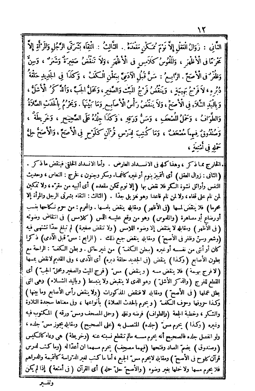 الثَّانِي زَوَال الْعقل أَي التَّمْيِيز بنوم أَو غَيره كإغماء وسكر وجنون فَخرج النعاس وَحَدِيث النَّفس وأوائل نشوة السكر فَلَا نقض بهَا