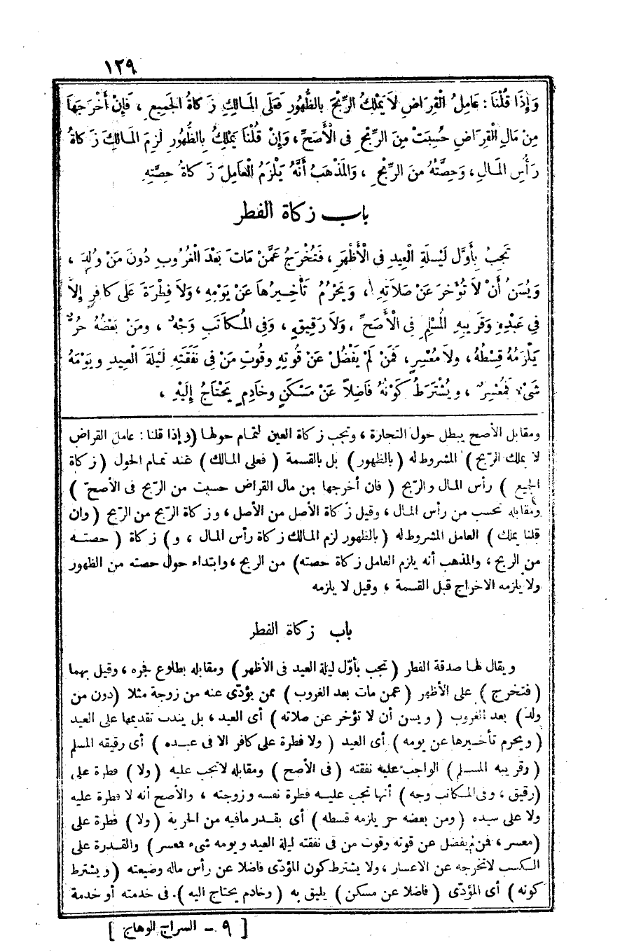 من الرِّبْح وَابْتِدَاء حول حِصَّته من الظُّهُور وَلَا يلْزمه الاخراج قبل الْقِسْمَة وَقيل لَا يلْزمه - صَلَّى اللَّهُ عَلَيْهِ وَسَلَّم َ - بَاب زَكَاة الْفطر - صَلَّى اللَّهُ عَلَيْهِ وَسَلَّم َ - وَيُقَال لَهَا صَدَقَة الْفطر