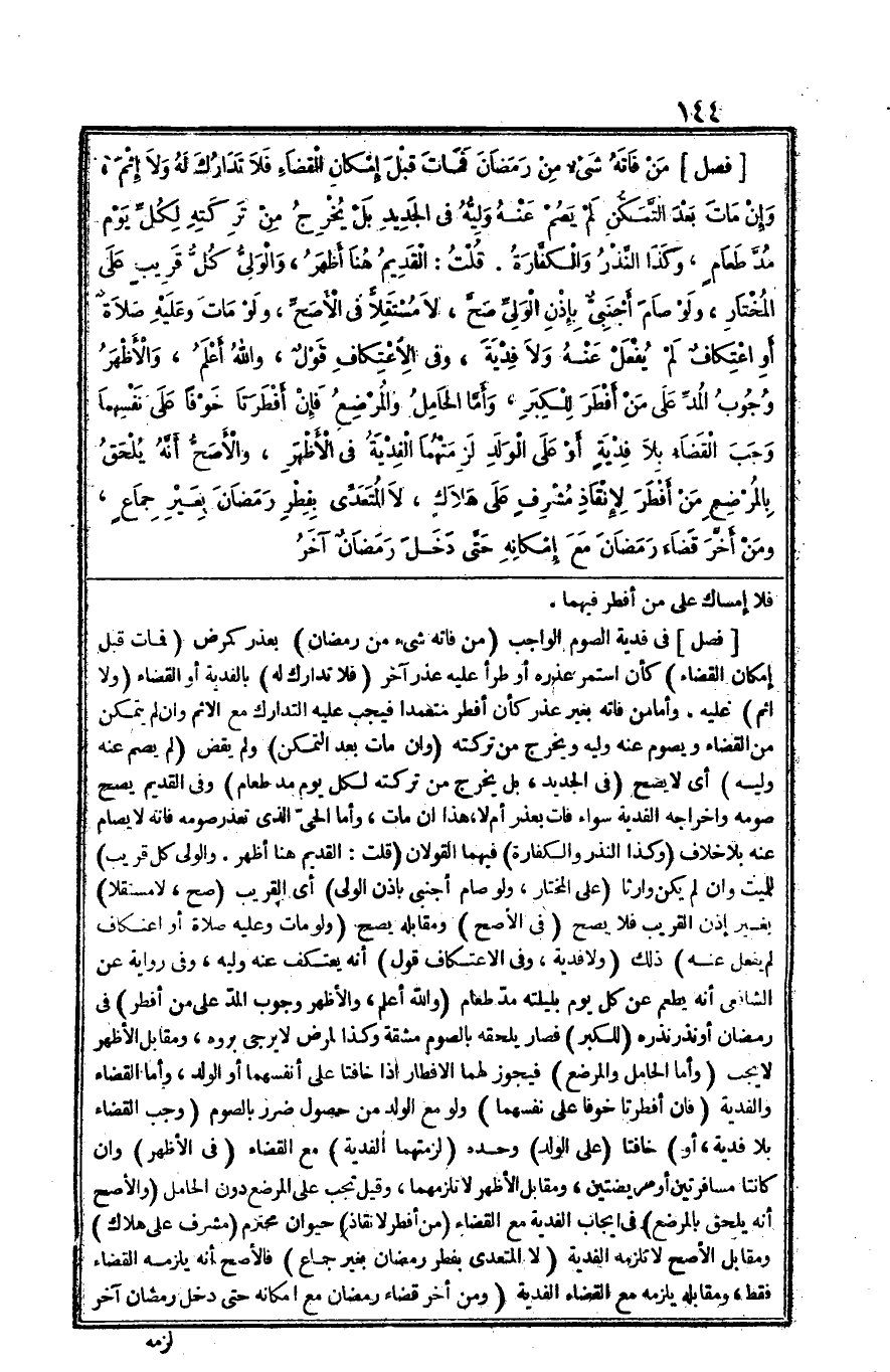 فصل فِي فديَة الصَّوْم الْوَاجِب