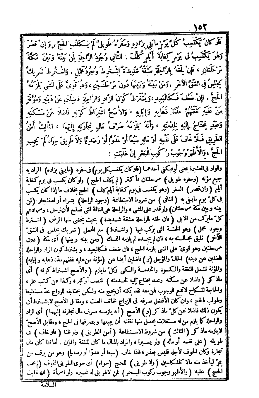 لمنصب أَو كبر وَكَذَا عَن كتب علم وَالْحَاجة للنِّكَاح لَا تمنع الْوُجُوب فَمن مَعَه نقد يُمكنهُ أَن يحجّ مِنْهُ وَلَكِن يَحْتَاجهُ للزواج عد مستطيعا وطولب بِالْحَجِّ وان كَانَ الْأَفْضَل صرفه فِي الزواج لخائف الْعَنَت وَمُقَابل الْأَصَح لَا يشْتَرط أَن يكون ذَلِك فَاضلا عَن كل مَا ذكر