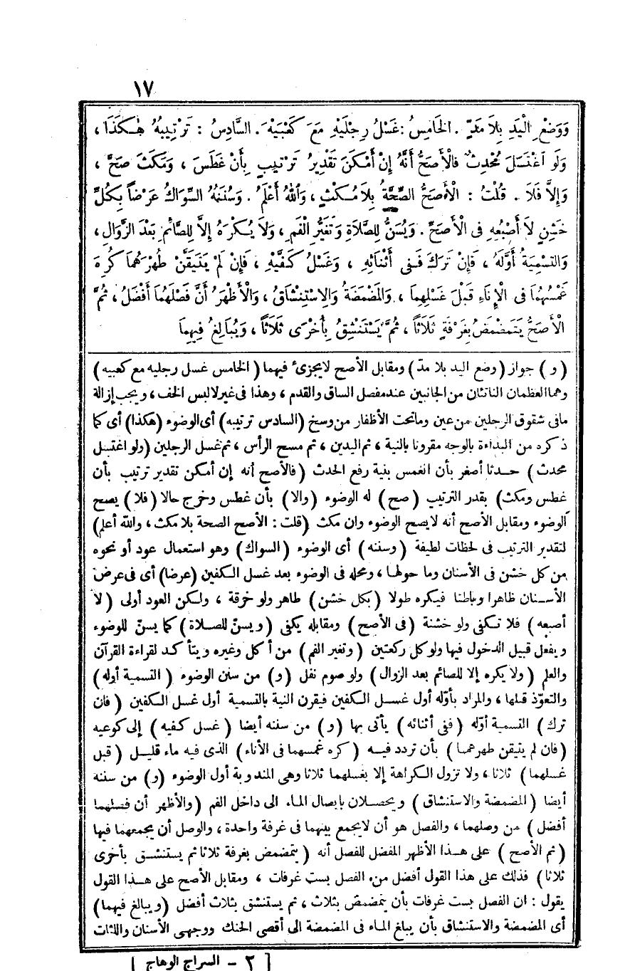 السِّوَاك وَهُوَ اسْتِعْمَال عود أَو نَحوه من كل خشن فِي الْأَسْنَان وَمَا حولهَا وَمحله فِي الْوضُوء بعد غسل الْكَفَّيْنِ