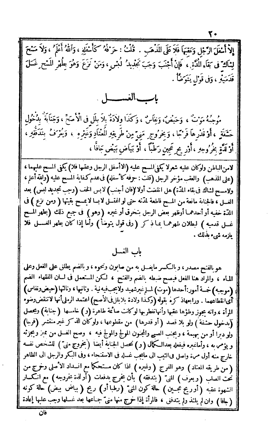 هُوَ بِالْفَتْح مصدر وبالكسر مَا يغسل بِهِ من صابون وَنَحْوه وبالضم يُطلق على الْفِعْل وعَلى المَاء وَالْمرَاد هُنَا الْفِعْل فَيصح ضَبطه بِالضَّمِّ وَالْفَتْح لَكِن الْمُسْتَعْمل فِي لِسَان الْفُقَهَاء الضَّم