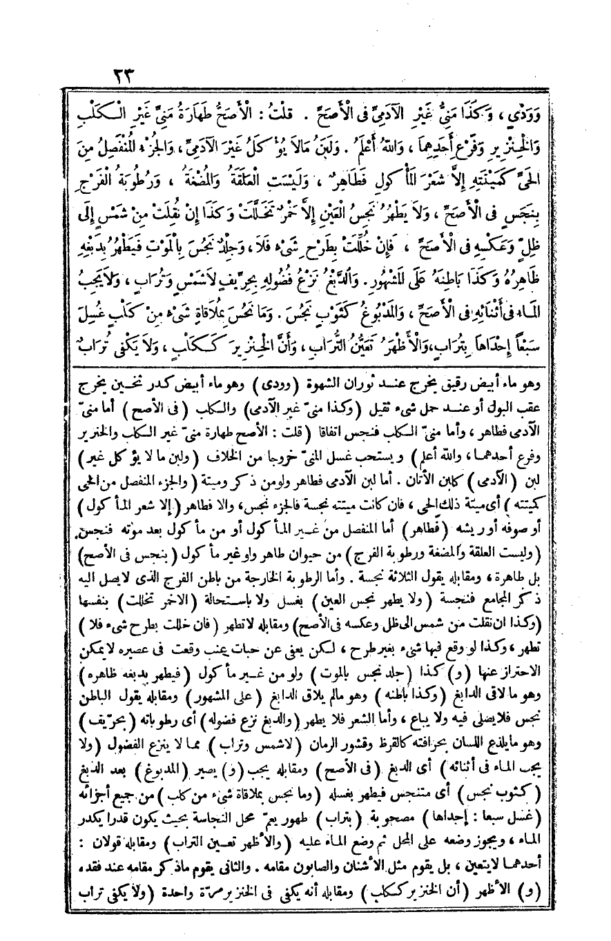 قلت الْأَصَح طَهَارَة مني غير الْكَلْب وَالْخِنْزِير وَفرع أَحدهمَا وَالله أعلم