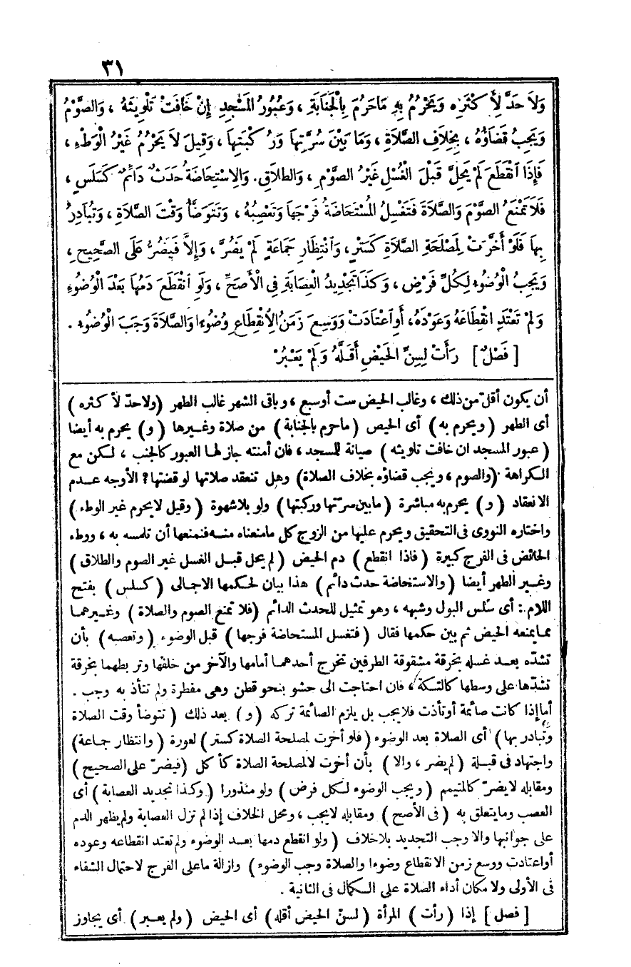 وَغَيرهمَا مِمَّا يمنعهُ الْحيض ثمَّ بَين حكمهَا فَقَالَ