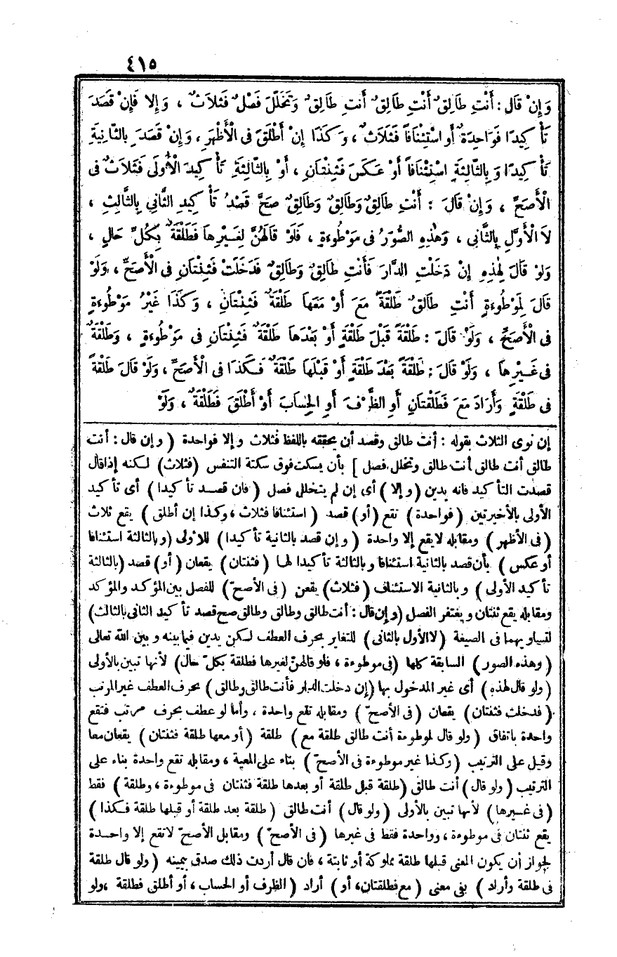 الظّرْف أَو الْحساب أَو أطلق فطلقة وَلَو