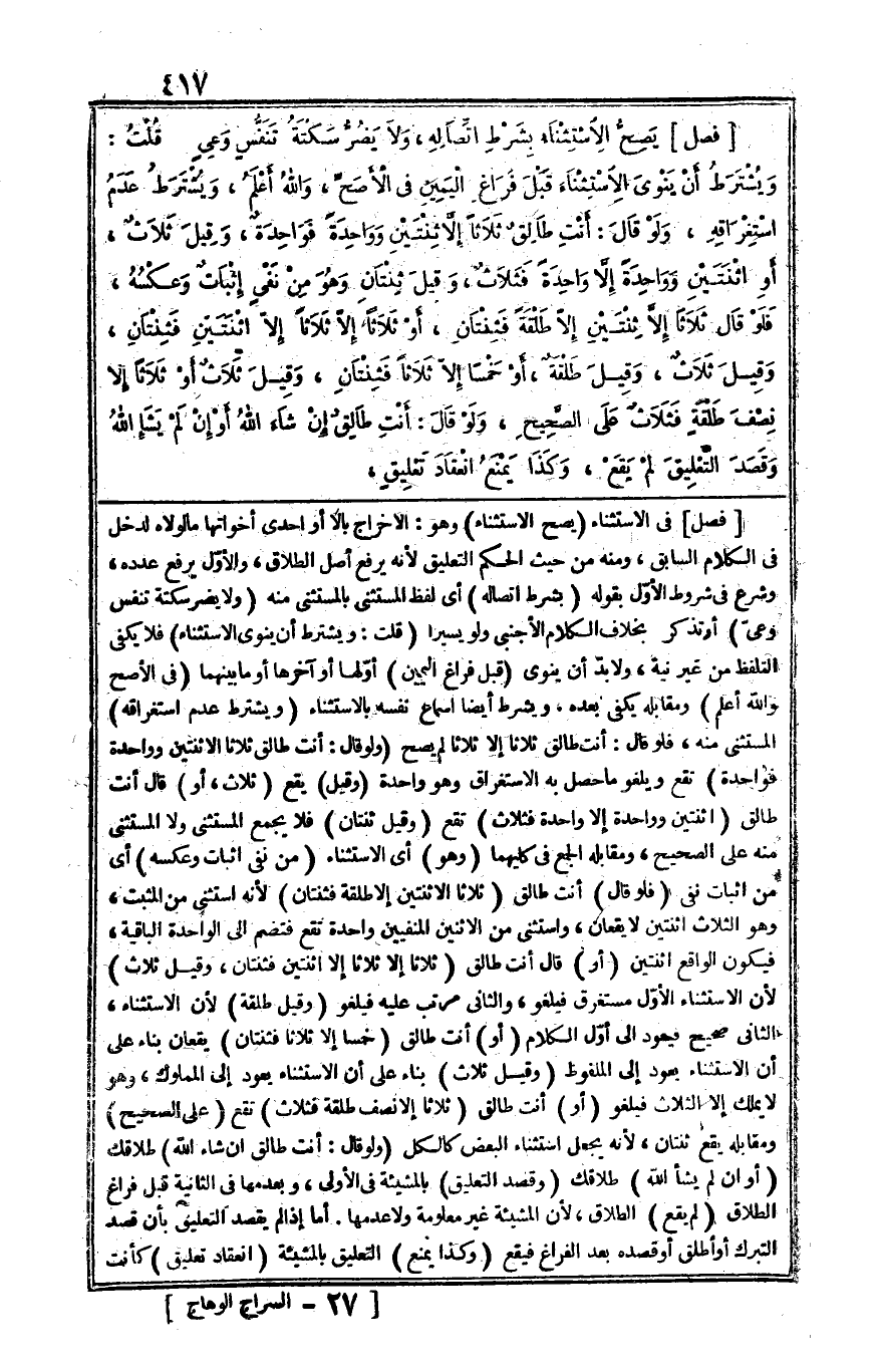 الْمُسْتَثْنى مِنْهُ فَلَو قَالَ انت طَالِق ثَلَاث الا ثَلَاثًا لم يَصح