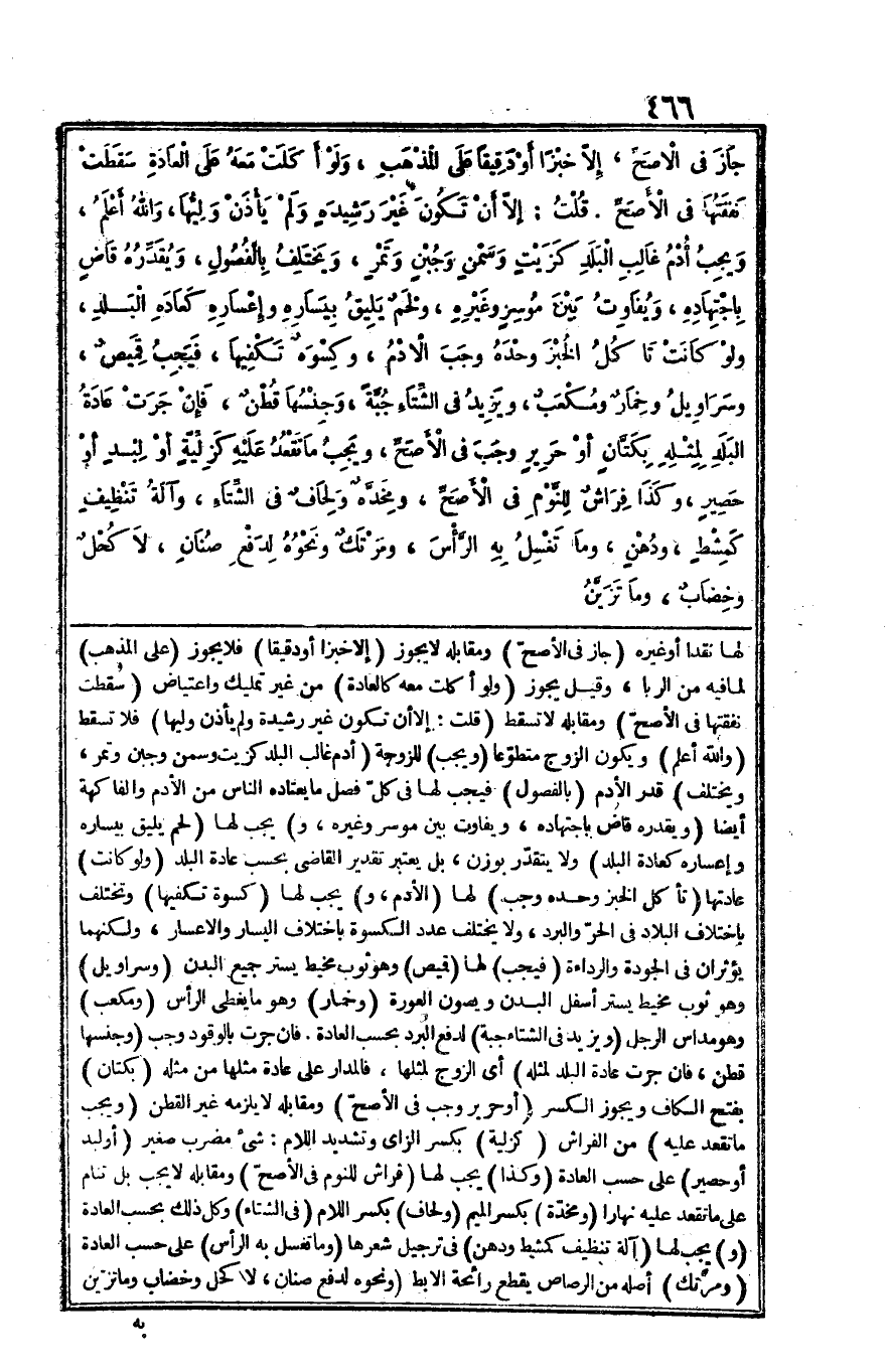 وجنسها قطن فَإِن جرت عَادَة الْبَلَد لمثله