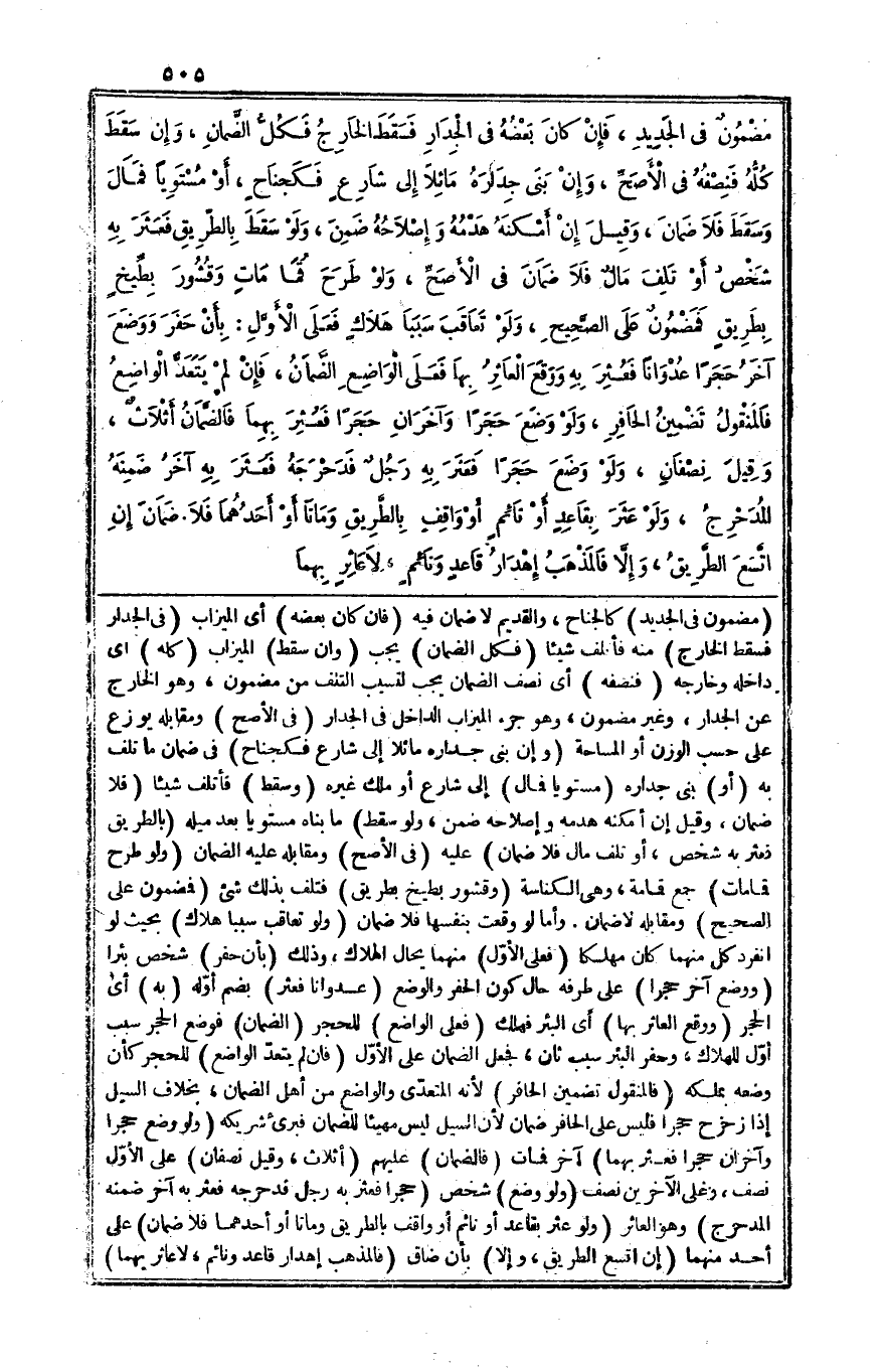 فَوضع الْحجر سَبَب أول للهلاك وحفر الْبِئْر سَبَب ثَان فَجعل الضَّمَان على الأول