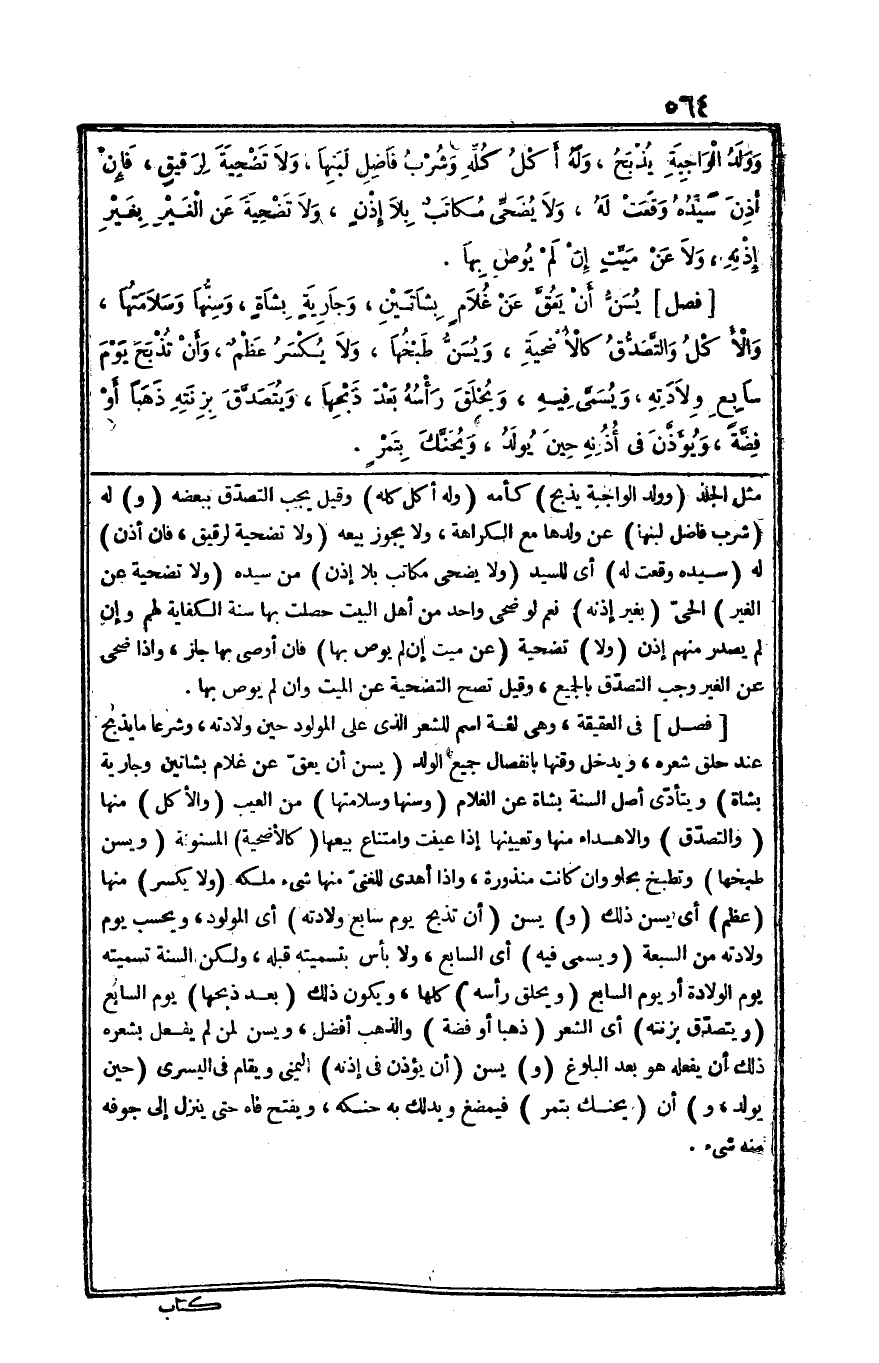 فِي الْعَقِيقَة وَهِي لُغَة اسْم للشعر الَّذِي على الْمَوْلُود حِين وِلَادَته وَشرعا مَا يذبح عِنْد حلق شعره وَيدخل وَقتهَا بانفصال جَمِيع الْوَلَد