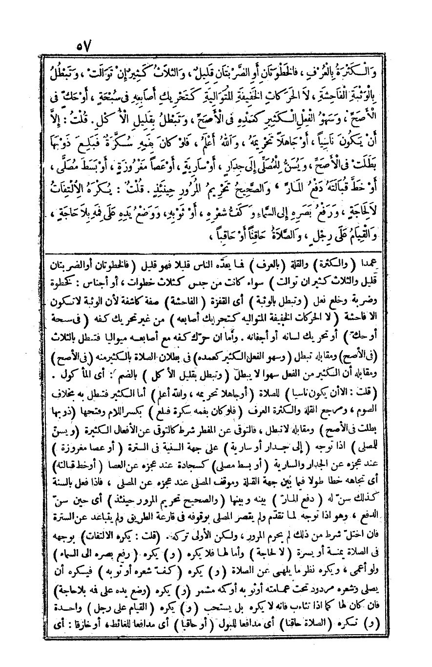 أما الْكثير فَتبْطل بِهِ بِخِلَاف الصَّوْم ومرجع الْقلَّة وَالْكَثْرَة الْعرف