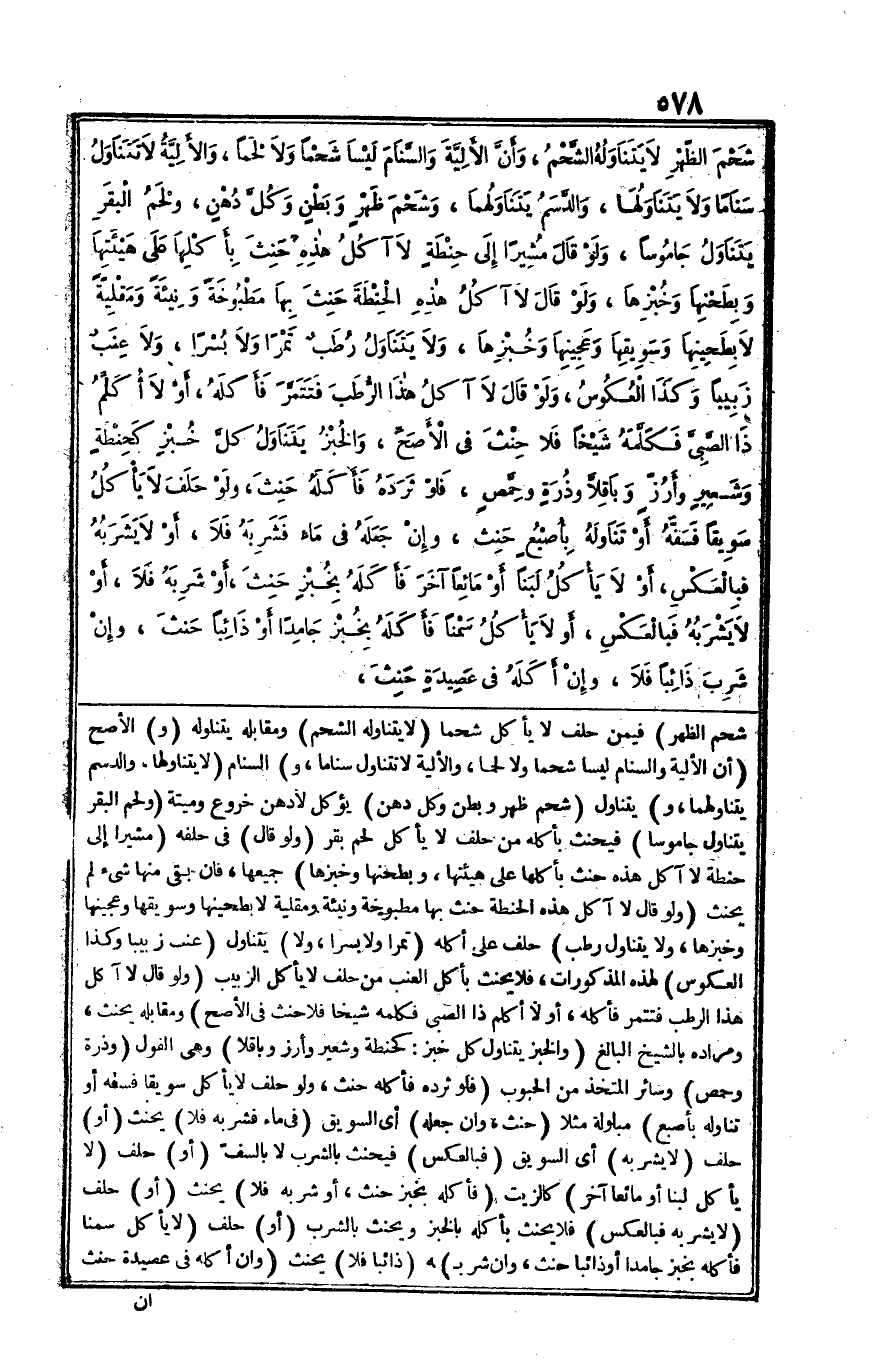 لَا يَأْكُل سمنا فَأَكله بِخبْز جَامِدا أَو ذائبا حنث وان شربه
