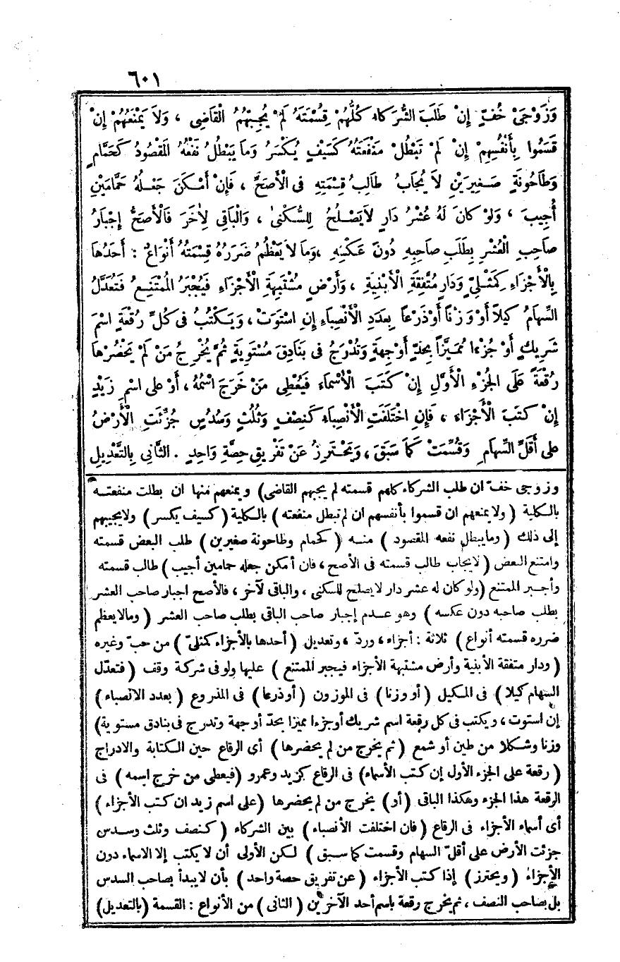 كَنِصْف وَثلث وَسدس جزئت الأَرْض على أقل السِّهَام وَقسمت كَمَا سبق