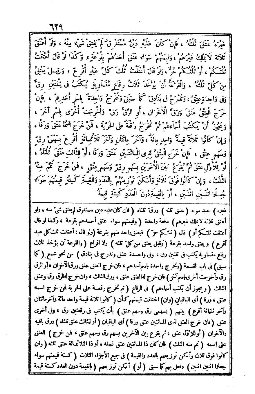 فَإِن كَانَ عَلَيْهِ دين مُسْتَغْرق لم يعْتق شئ مِنْهُ وَلَو أعتق ثَلَاثَة لَا يملك غَيرهم