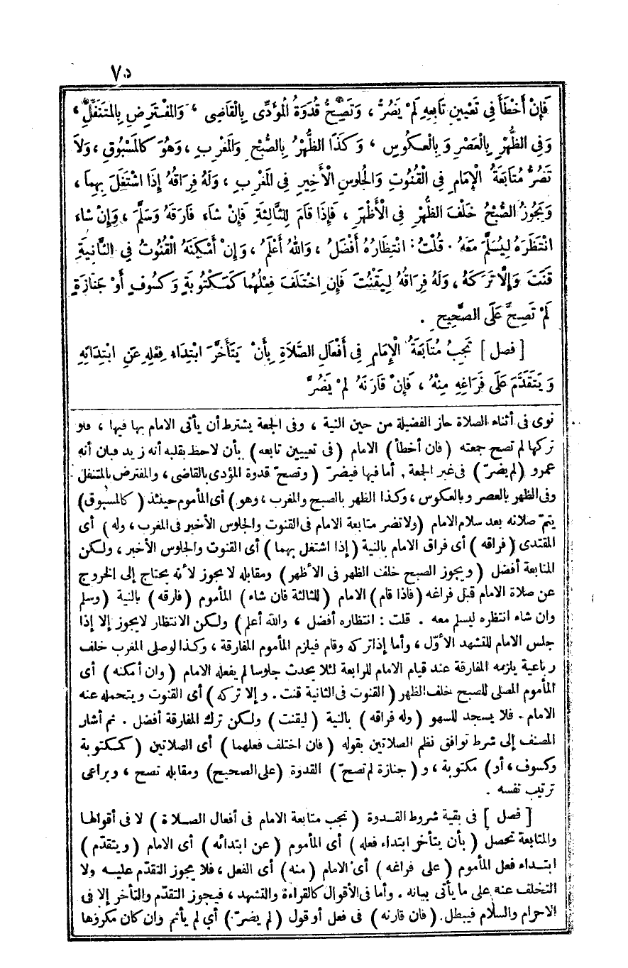 فصل فِي بَقِيَّة شُرُوط الْقدْوَة
