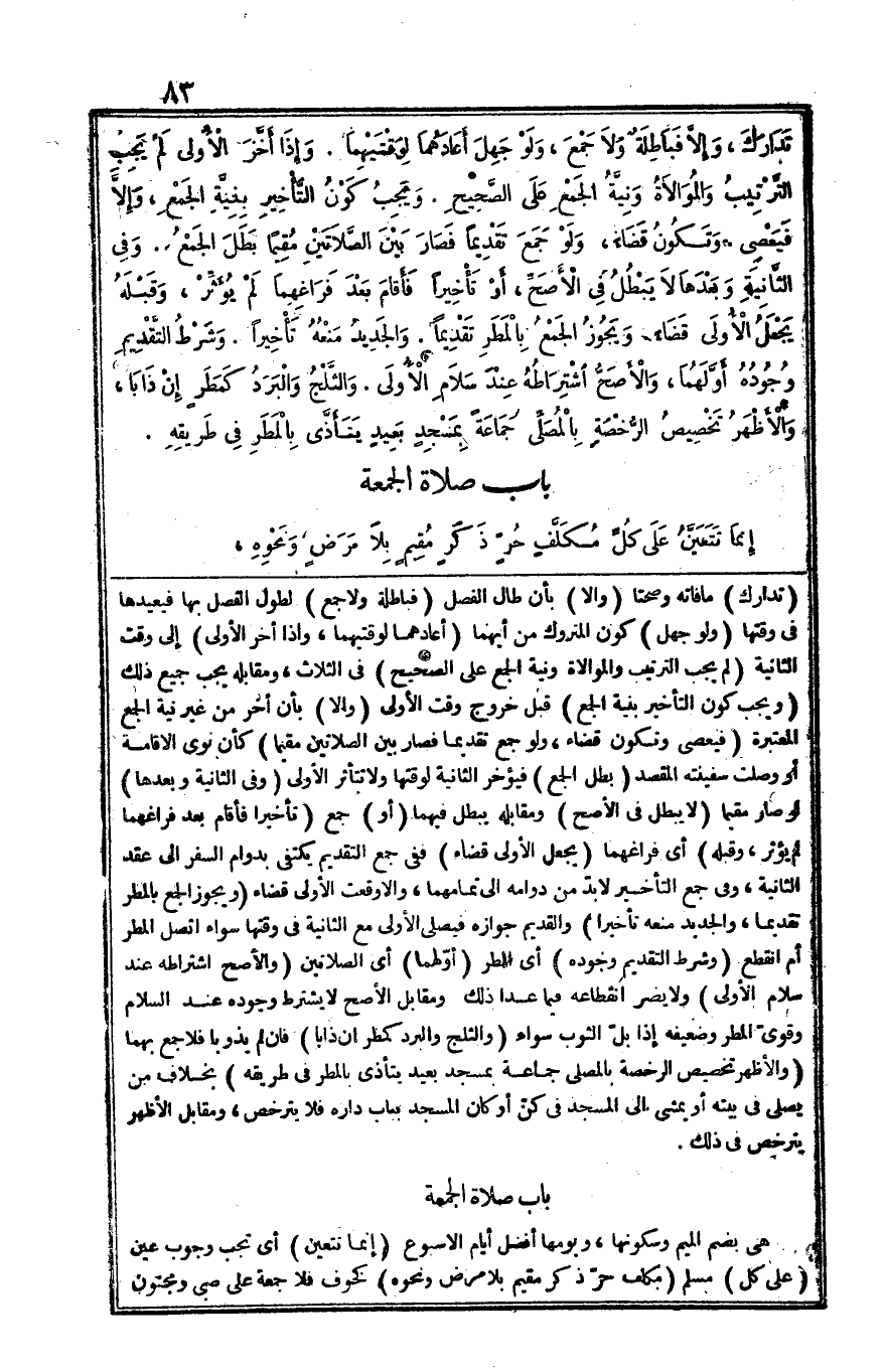 بِخِلَاف من يُصَلِّي فِي بَيته أَو يمشي إِلَى الْمَسْجِد فِي كن أَو كَانَ الْمَسْجِد بِبَاب دَاره فَلَا يترخص وَمُقَابل الْأَظْهر يترخص فِي ذَلِك - صَلَّى اللَّهُ عَلَيْهِ وَسَلَّم َ - بَاب صَلَاة الْجُمُعَة - صَلَّى اللَّهُ عَلَيْهِ وَسَلَّم َ - هِيَ بِضَم الْمِيم وسكونها ويومها أفضل أَيَّام الْأُسْبُوع