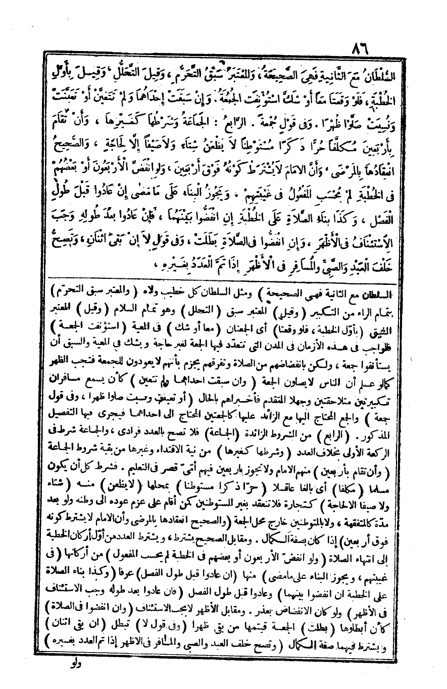 مِنْهُم الإِمَام وَلَا تجوز بِأَرْبَعِينَ فيهم أُمِّي قصر فِي التَّعْلِيم فَشرط كل أَن يكون مُسلما