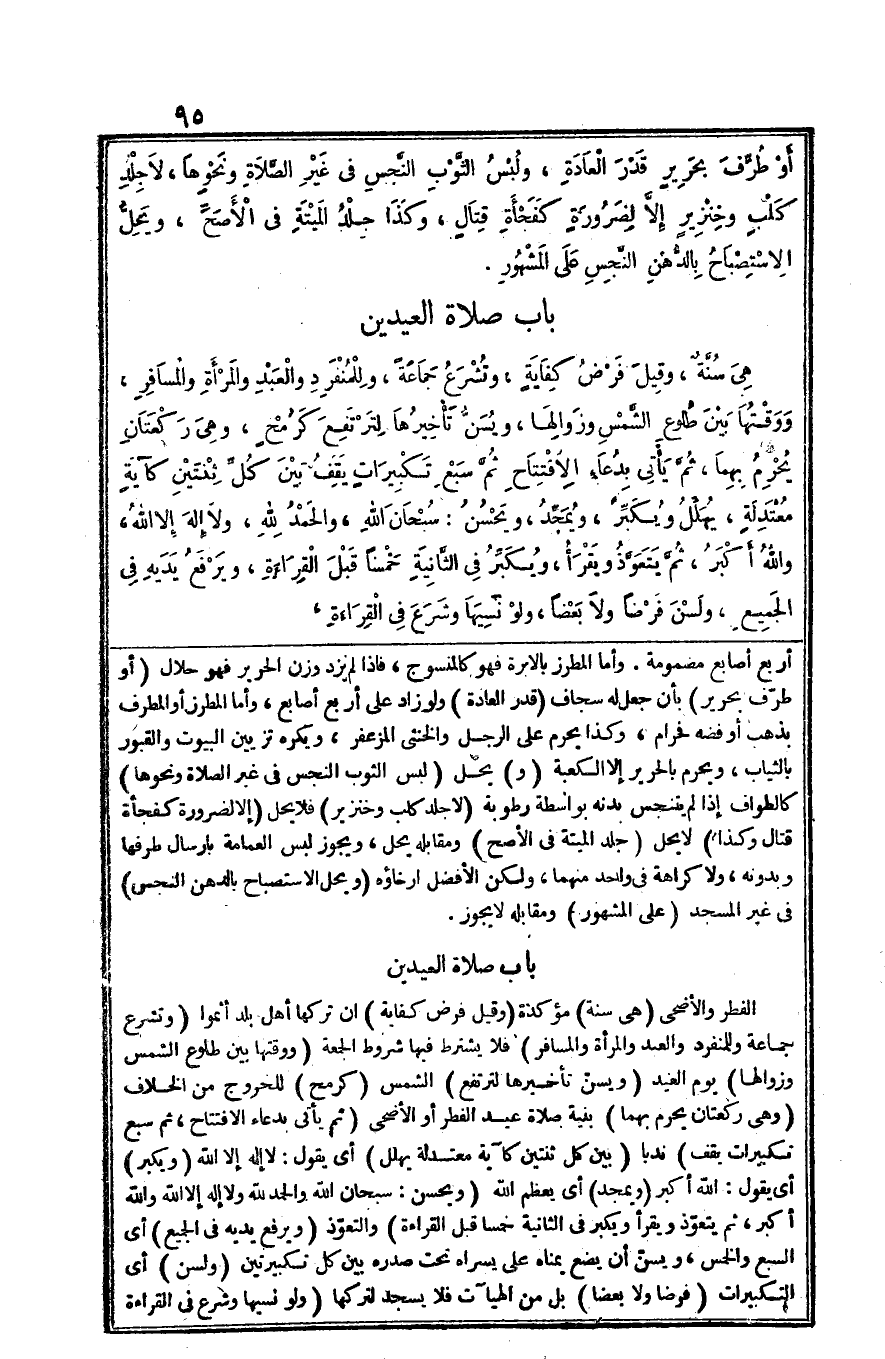 وَمُقَابِله لَا يجوز - صَلَّى اللَّهُ عَلَيْهِ وَسَلَّم َ - بَاب صَلَاة الْعِيدَيْنِ - صَلَّى اللَّهُ عَلَيْهِ وَسَلَّم َ - الْفطر والأضحى