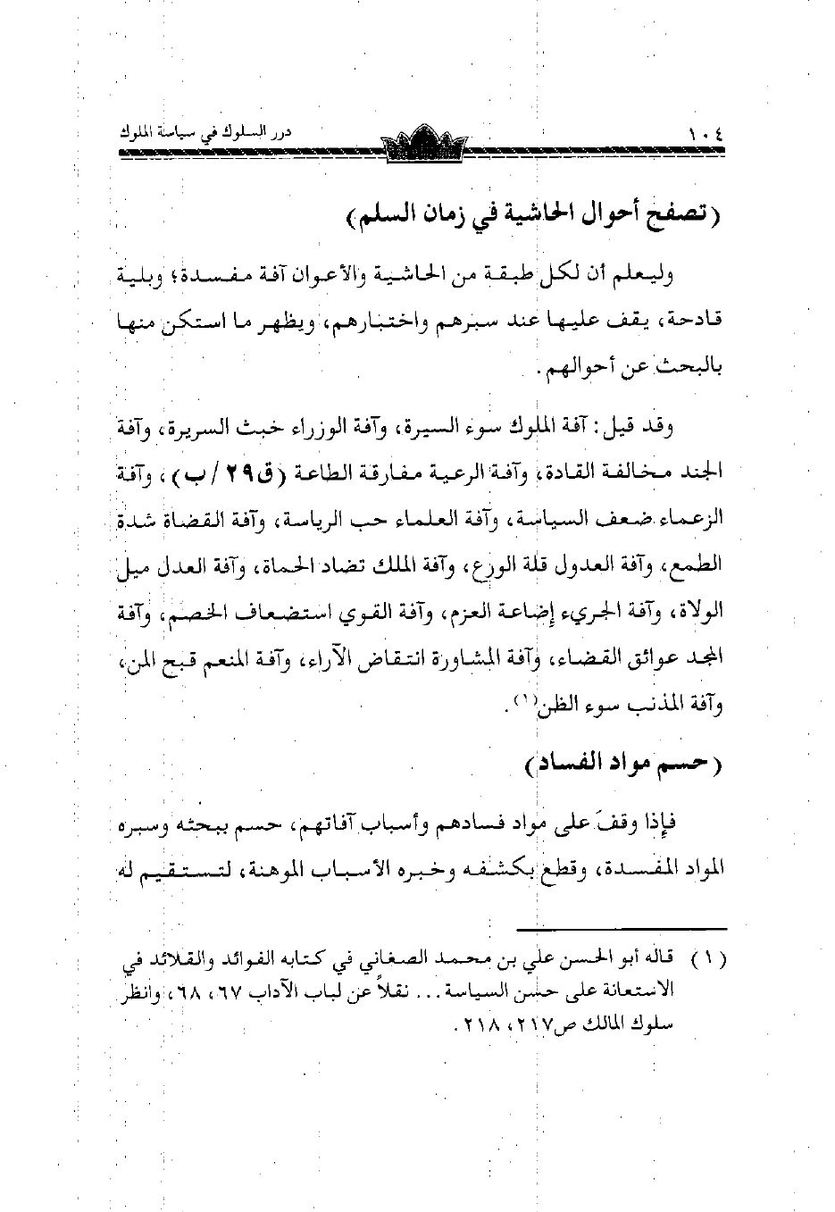 تصفح أَحْوَال الْحَاشِيَة فِي زمَان السّلم