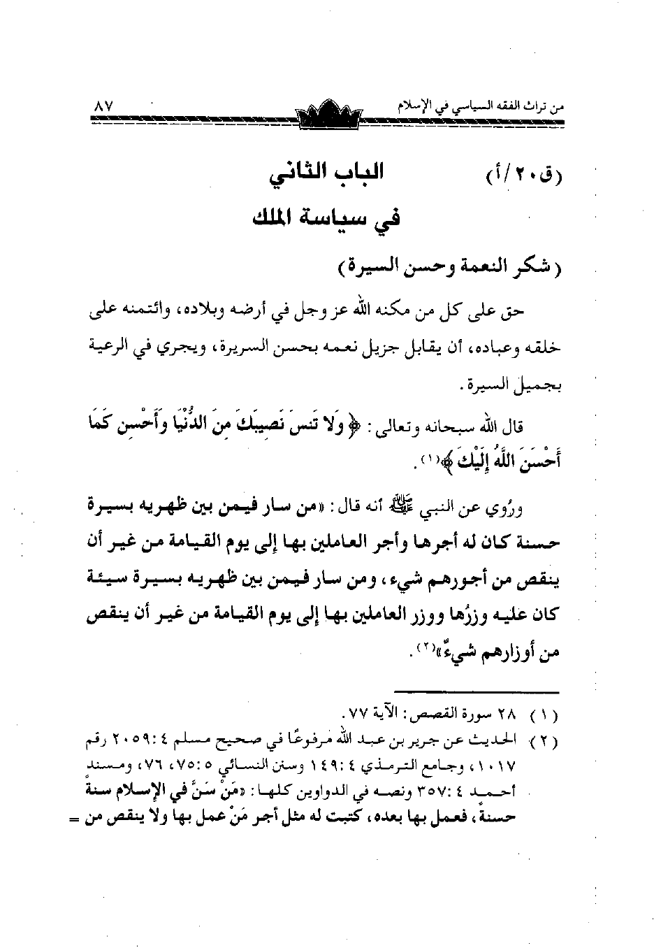 حق على كل من مكنه الله عز وَجل فِي أرضه وبلاده وائتمنه على خلقه وعباده أَن يُقَابل جزيل نعمه بِحسن السريرة وَيجْرِي فِي الرّعية بجميل السِّيرَة