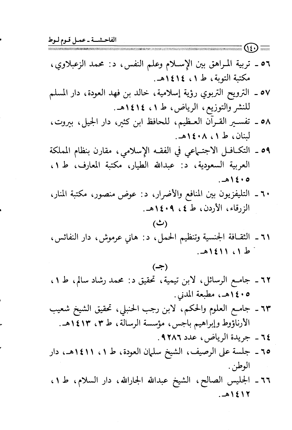 57 ـ الترويح التربوي رؤية إسلامية، خالد بن فهد العودة، دار المسلم للنشر والتوزيع، الرياض، ط 1، 1414 هـ.
