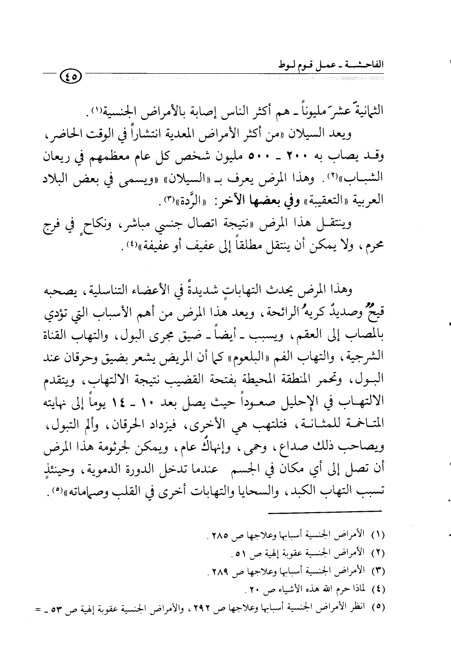 5 انظر الأمراض الجنسية أسبابها وعلاجها ص 292، والأمراض الجنسية عقوبة إلهية ص 53 ـ =