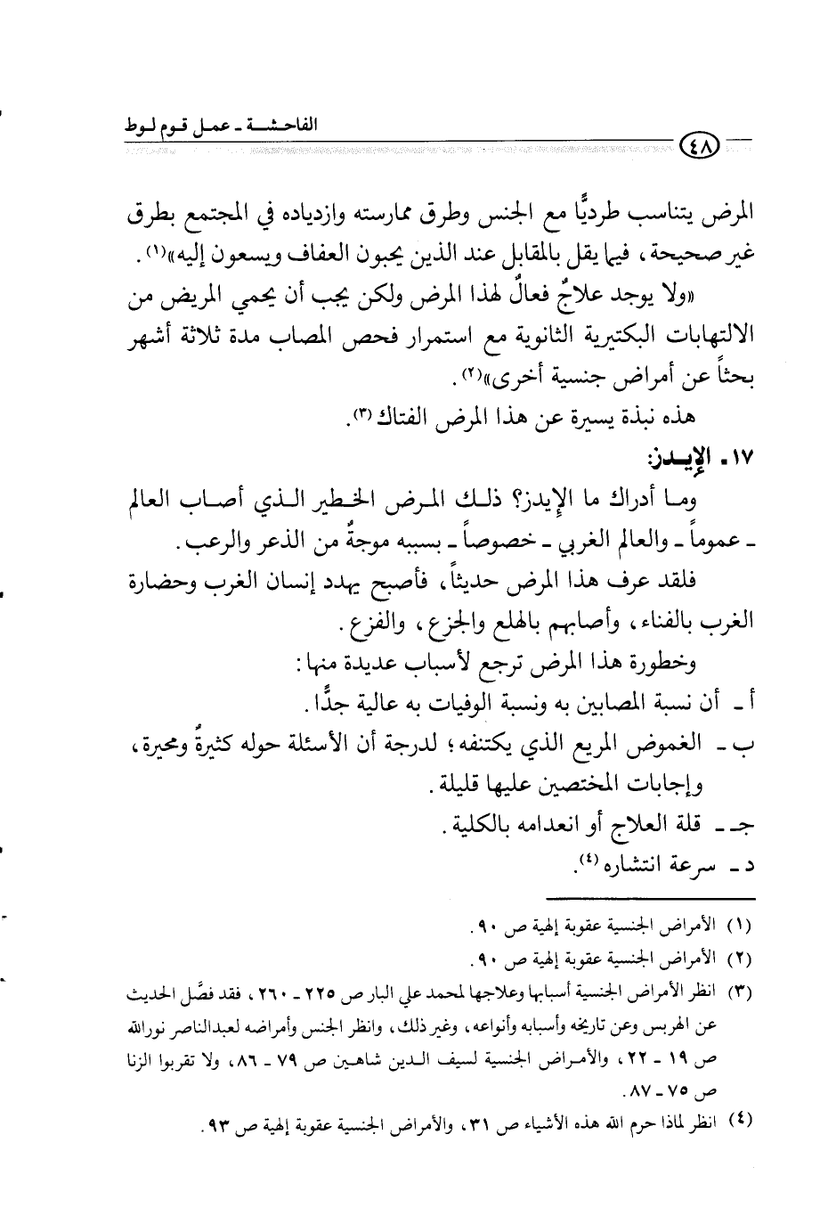 4 انظر لماذا حرم الله هذه الأشياء ص 31، والأمراض الجنسية عقوبة إلهية ص 93.
