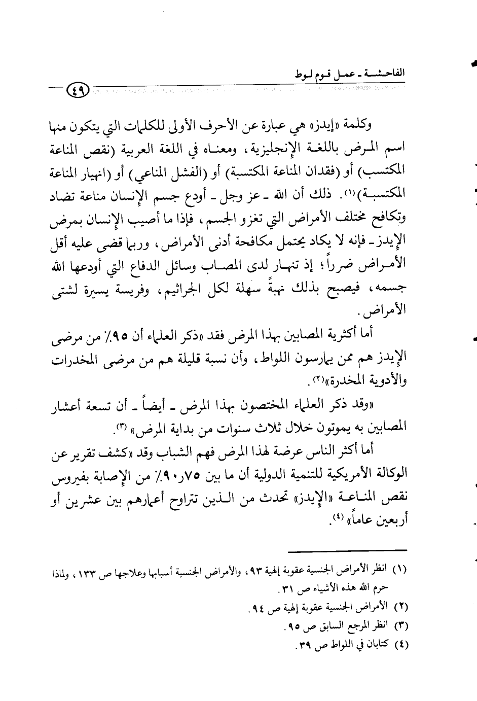1 انظر الأمراض الجنسية عقوبة إلهية 93، والأمراض الجنسية أسبابها وعلاجها ص 133، ولماذا حرم الله هذه الأشياء ص 31.