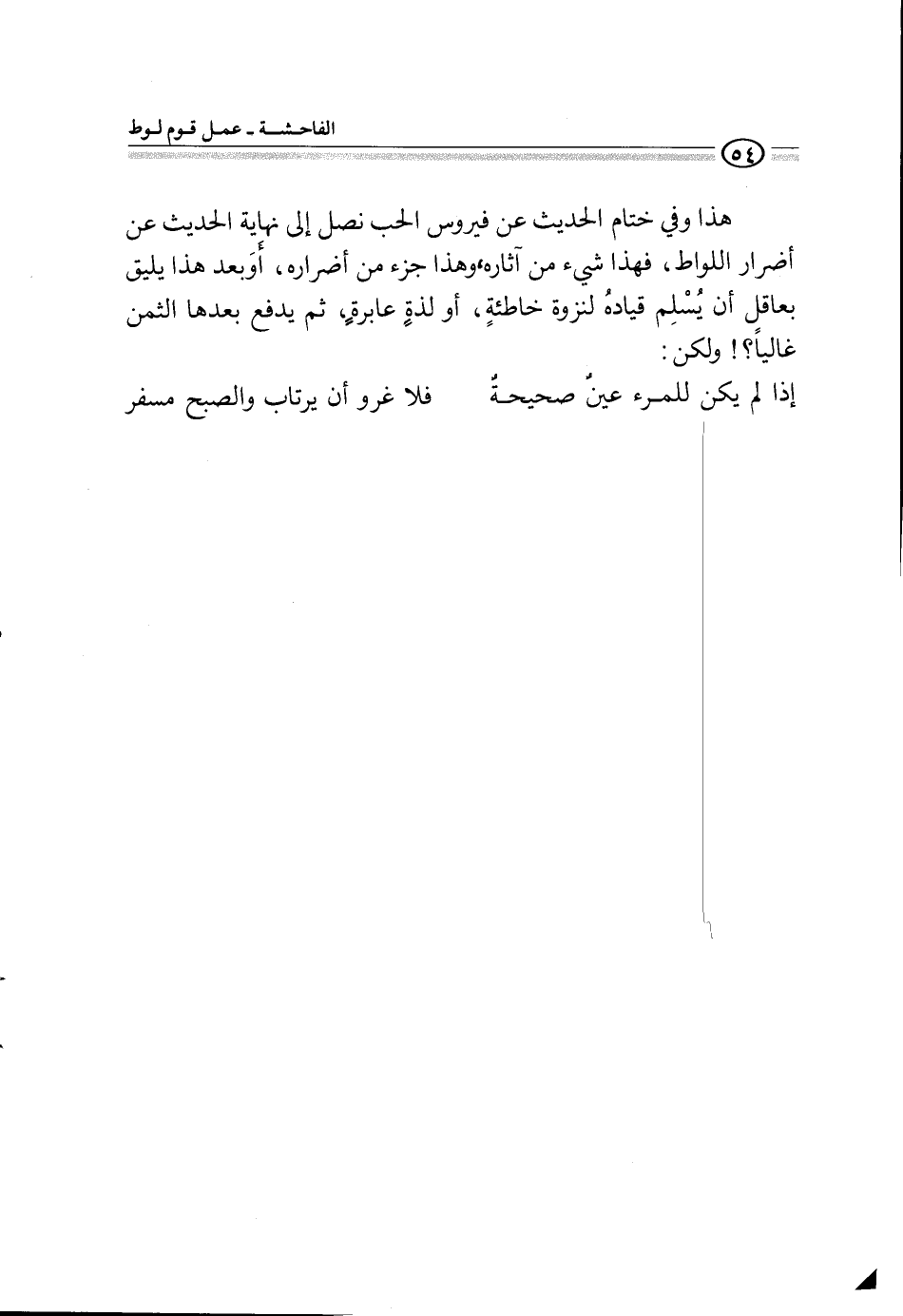 هذا وفي ختام الحديث عن فيروس الحب نصل إلى نهاية الحديث عن أضرار اللواط، فهذا شيء من آثاره، وهذا جزء من أضراره، أو بعد هذا يليق بعاقل أن يسلم قياده لنزوة خاطئة، أو لذة عابرة، ثم يدفع بعدها الثمن غاليا؟! ولكن: