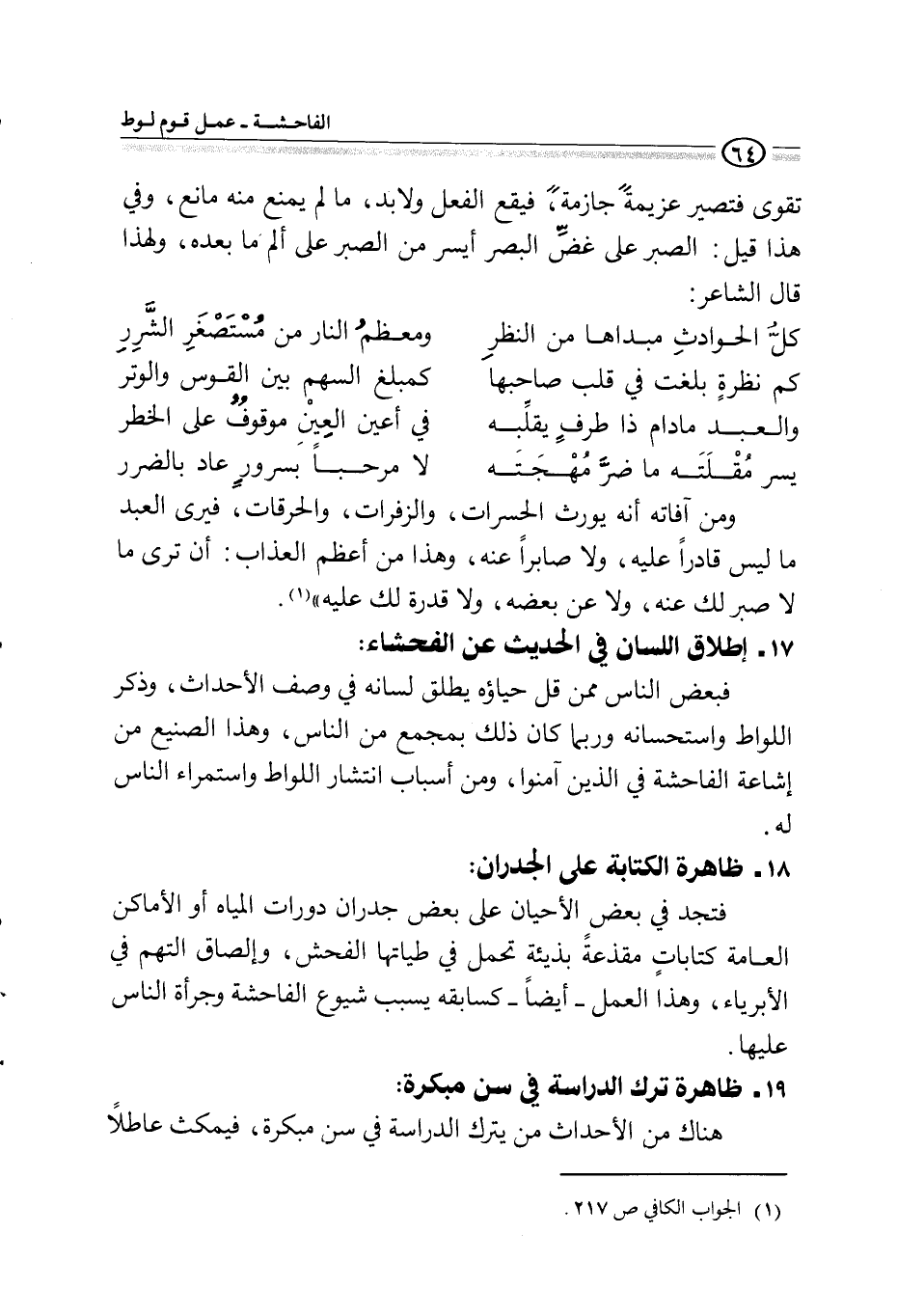 17 ـ إطلاق اللسان في الحديث عن الفحشاء: