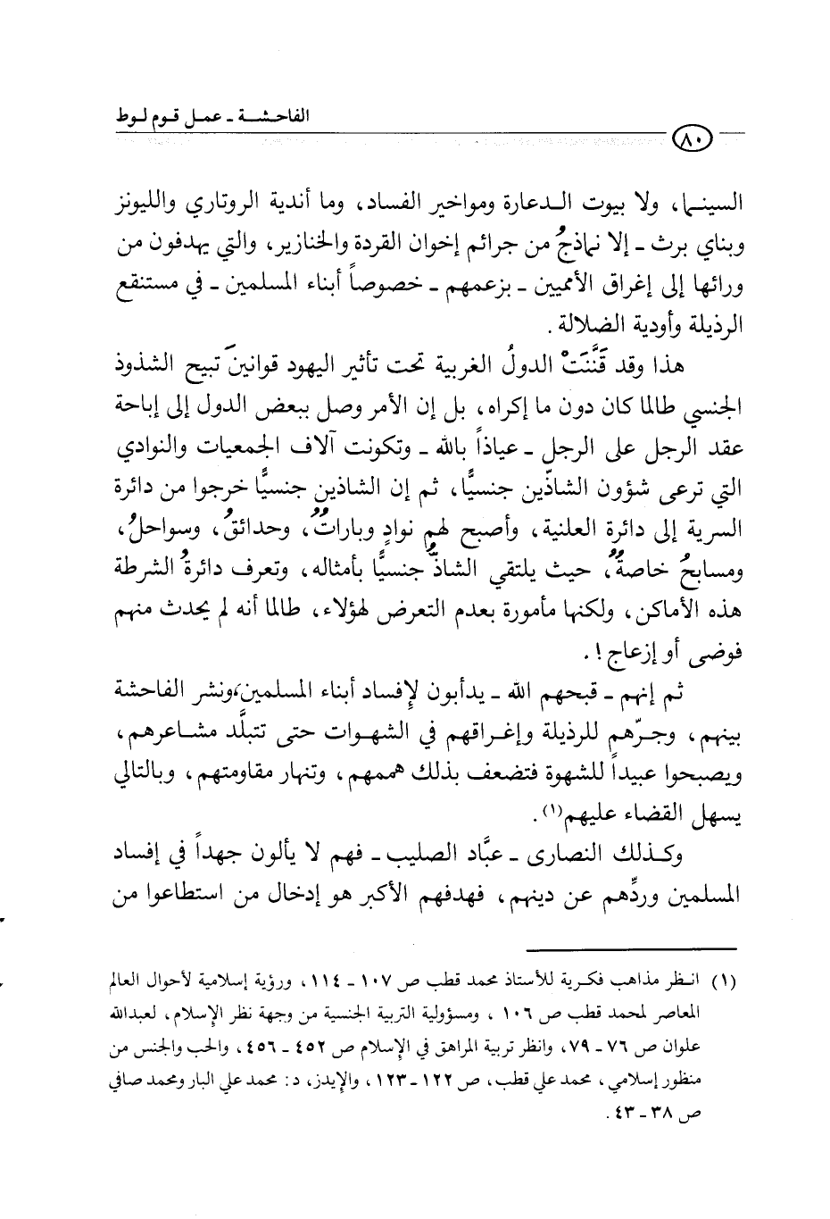 1 انظر مذاهب فكرية للأستاذ محمد قطب ص 107 ـ 114، ورؤية إٍسلامية لأحوال العالم المعاصر لمحمد قطب ص 106، ومسؤولية التربية الجنسية من وجهة نظر الإٍسلام، لعبد الله علوان ص 76 ـ 79، وانظر تربية المراهق في الإسلام ص 452 ـ 456، والحب والجنس من منظور إٍسلامي، محمد علي قطب، ص 122 ـ 123، والإيدز، د: محمد علي البار ومحمد صافي ص 38 ـ 43.