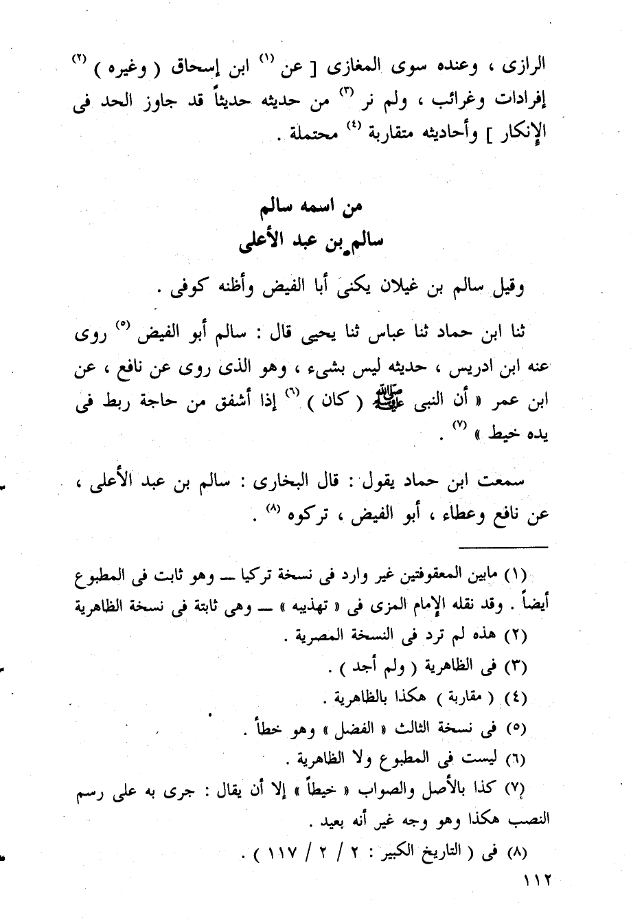 ثَنَا ابْن حَمَّاد ثَنَا عَبَّاس ثَنَا يحيى قَالَ سَالم أَبُو الْفَيْض روى عَنهُ ابْن ادريس حَدِيثه لَيْسَ بِشَيْء وَهُوَ الذى روى عَن نَافِع عَن ابْن عمر أَن النَّبِي صلى الله عَلَيْهِ وَسلم كَانَ إِذا أشْفق من حَاجَة ربط فى يَده خيط