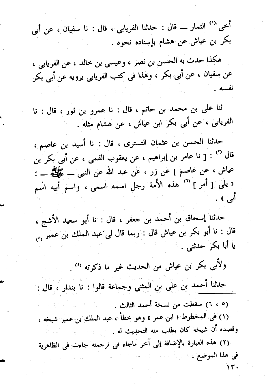 ثَنَا على بن مُحَمَّد بن حَاتِم قَالَ نَا عَمْرو بن ثَوْر قَالَ نَا الفريابى عَن أَبى بكر ابْن عَيَّاش عَن هِشَام مثله