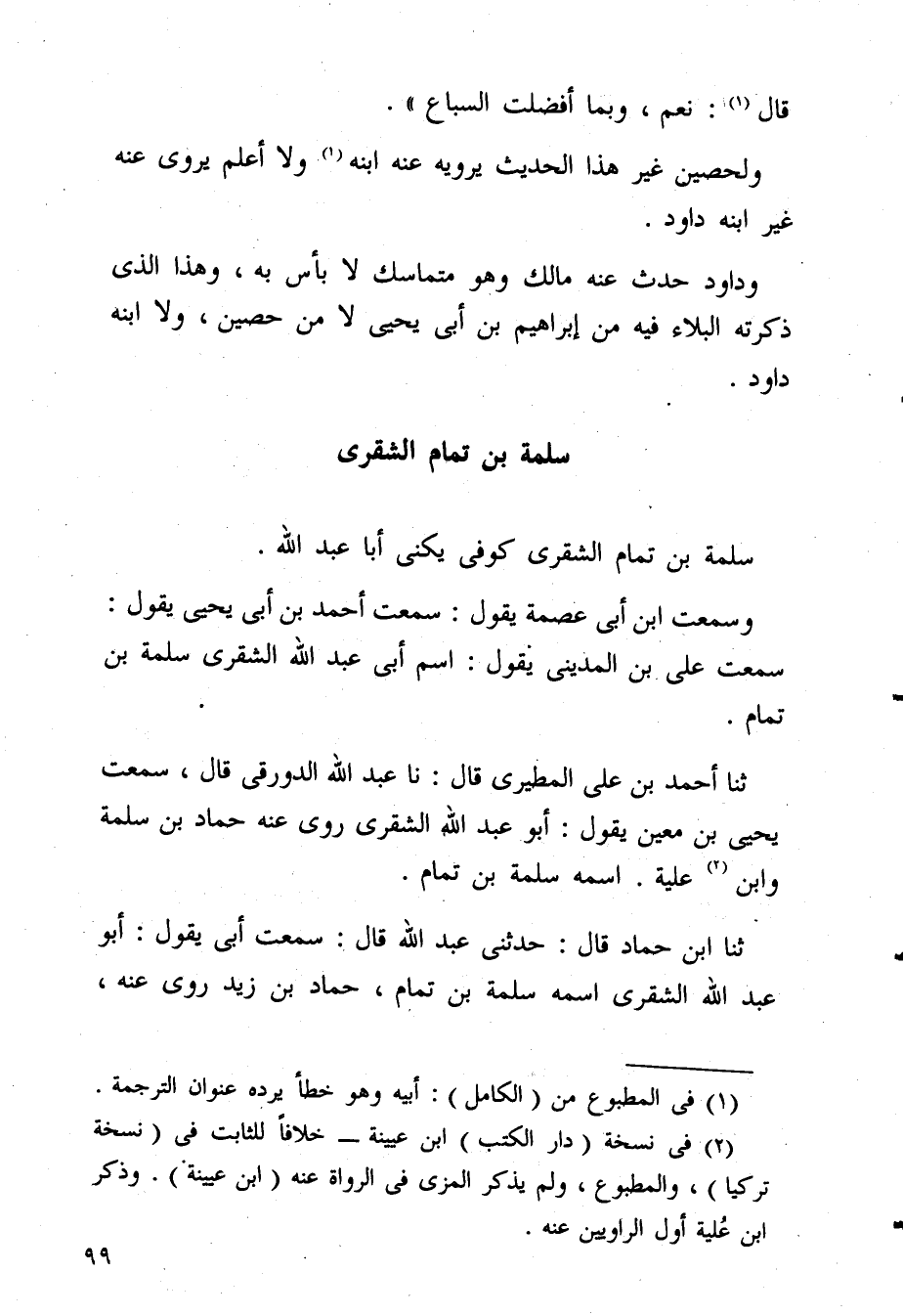 ثَنَا ابْن حَمَّاد قَالَ حَدثنِي عبد الله قَالَ سَمِعت أَبى يَقُول أَبُو عبد الله الشقرى اسْمه سَلمَة بن تَمام حَمَّاد بن زيد روى عَنهُ