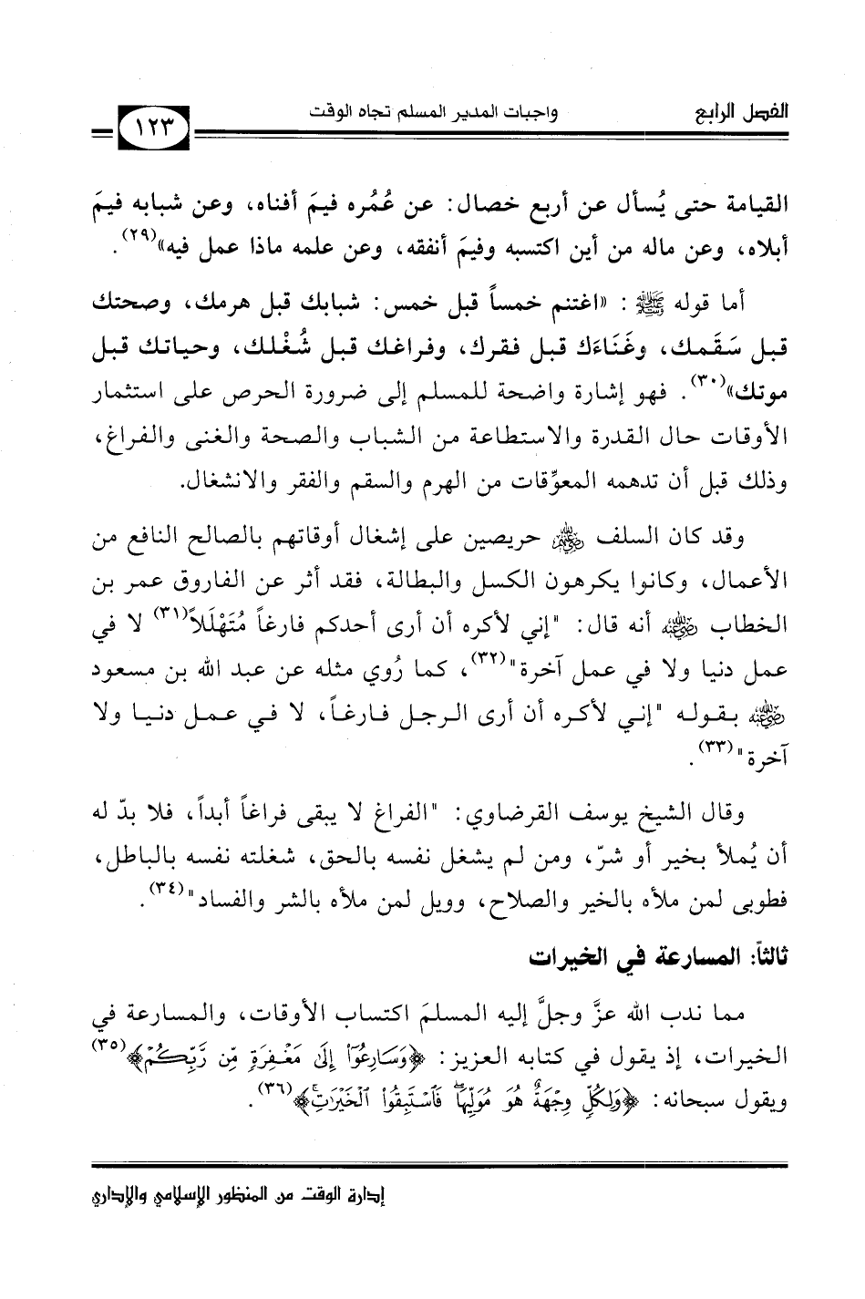 (¬3) المرجع نفسه، كتاب (56) ، باب (25) ، رقم الحديث (2823) ، ص 545. والقشيري، مسلم بن الحجاج النيسابوري 206-261هـ، صحيح مسلم، تحقيق محمد فؤاد عبد الباقي، دار إحياء الكتب العربية، القاهرة، دت، كتاب (48) ، باب (15) ، رقم الحديث (2706) ، ج4 ص2079.